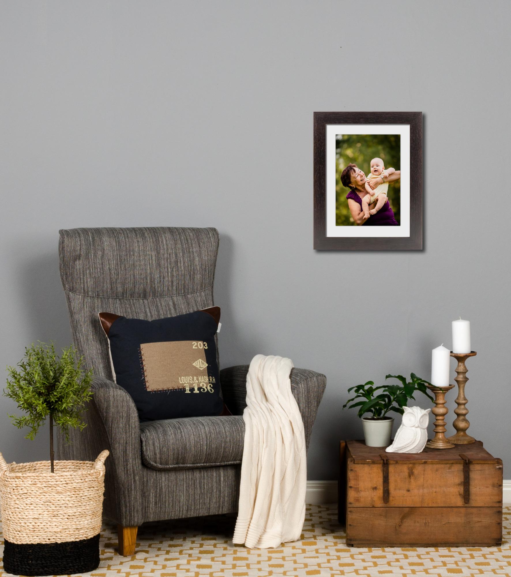 Décorez votre maison avec des cadres photo marron foncé que vous agencez avec des éléments décoratifs en vert et blanc pour une sensation harmonieuse et près à la nature. Nous avons ici un joli cadre photo marron foncé en bois pour y mettre vos plus belles photos. Le cadre est réalisé selon vos souhaits dans notre propre atelier d'encadrement. Puisque notre personnel a une longue expérience, vous pouvez compter sur un cadre solide de haute qualité pour résultat. De plus, il s'adaptera exactement où vous le souhaitez !