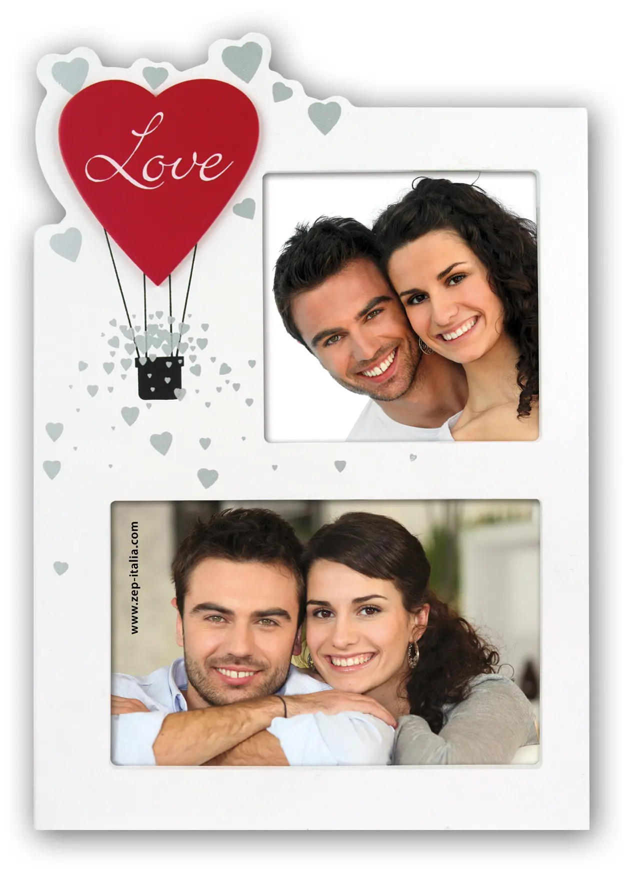 Cadre collage sous le signe de l'amour avec espace pour 2 photos. Le cadre est décoré de façon romantique avec de petits cœurs doux et le texte "Love". Ugs: