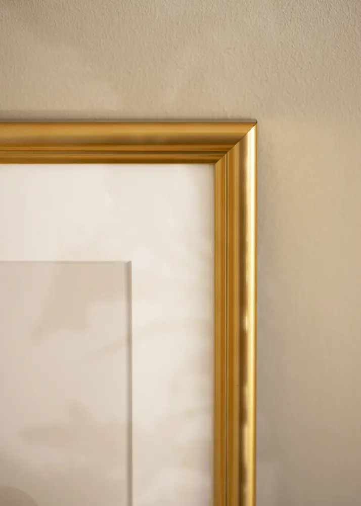 Högbo est un beau cadre doré profilé de haute qualité qui s'adapte parfaitement à vos plus belles photos. Avec sa profondeur de 35 mm, votre motif émerge de l'arrière-plan et crée une sensation 3D intéressante. Le cadre comprend le verre et le panneau arrière.