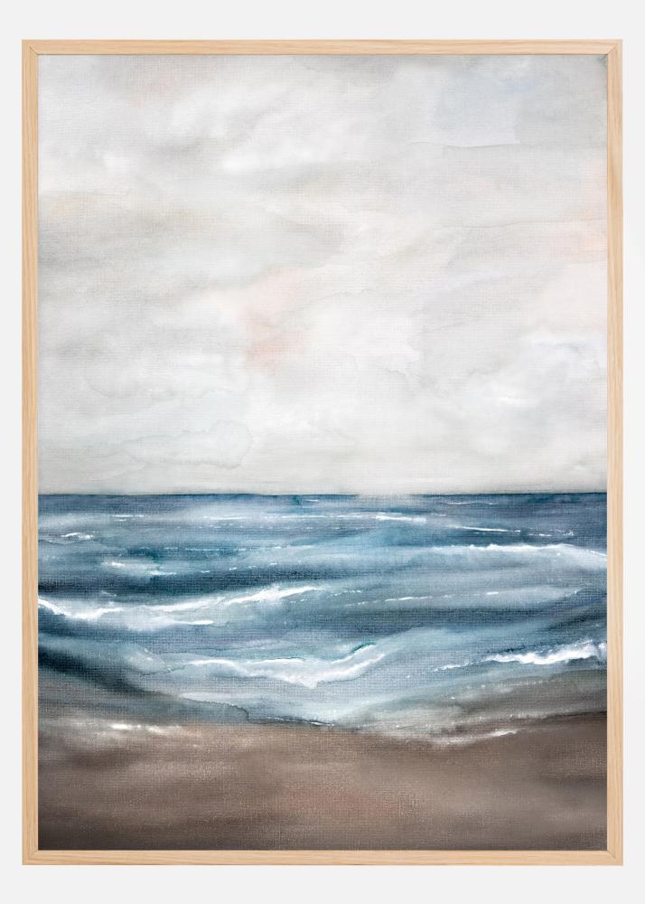 Une merveilleuse aquarelle représentant une mer agitée et un ciel gris clair. Cette peinture nostalgique souligne la force et la puissance de la mer. La mer brune au premier plan ajoute une touche de couleur supplémentaire pour créer une atmosphère de tempête. Sentez la brise marine lorsque vous accrochez cette affiche.