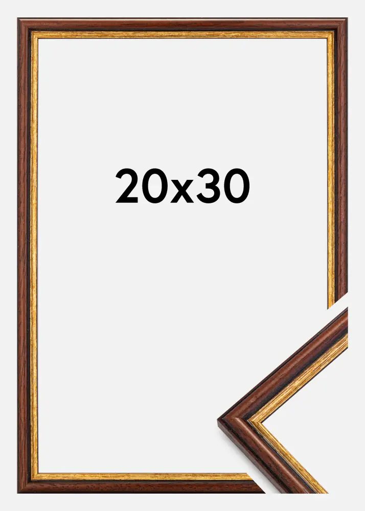 Horndal est un cadre de qualité fabriqué en Suède par Galleri 1. Le cadre est en bois et présente un profil marron moucheté de noir. Le bord le plus près de l'image est de couleur or avec des éléments marron. Le cadre a un profil à l'ancienne qui convient à la plupart des motifs.
