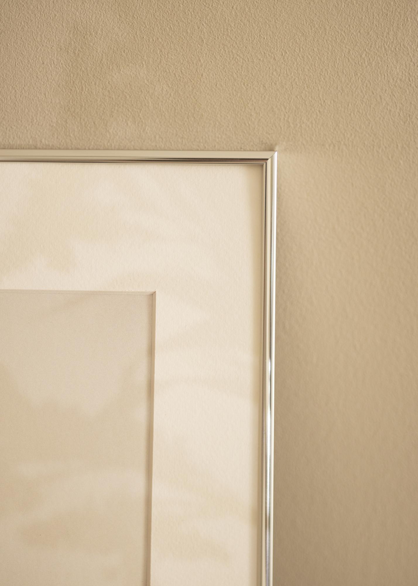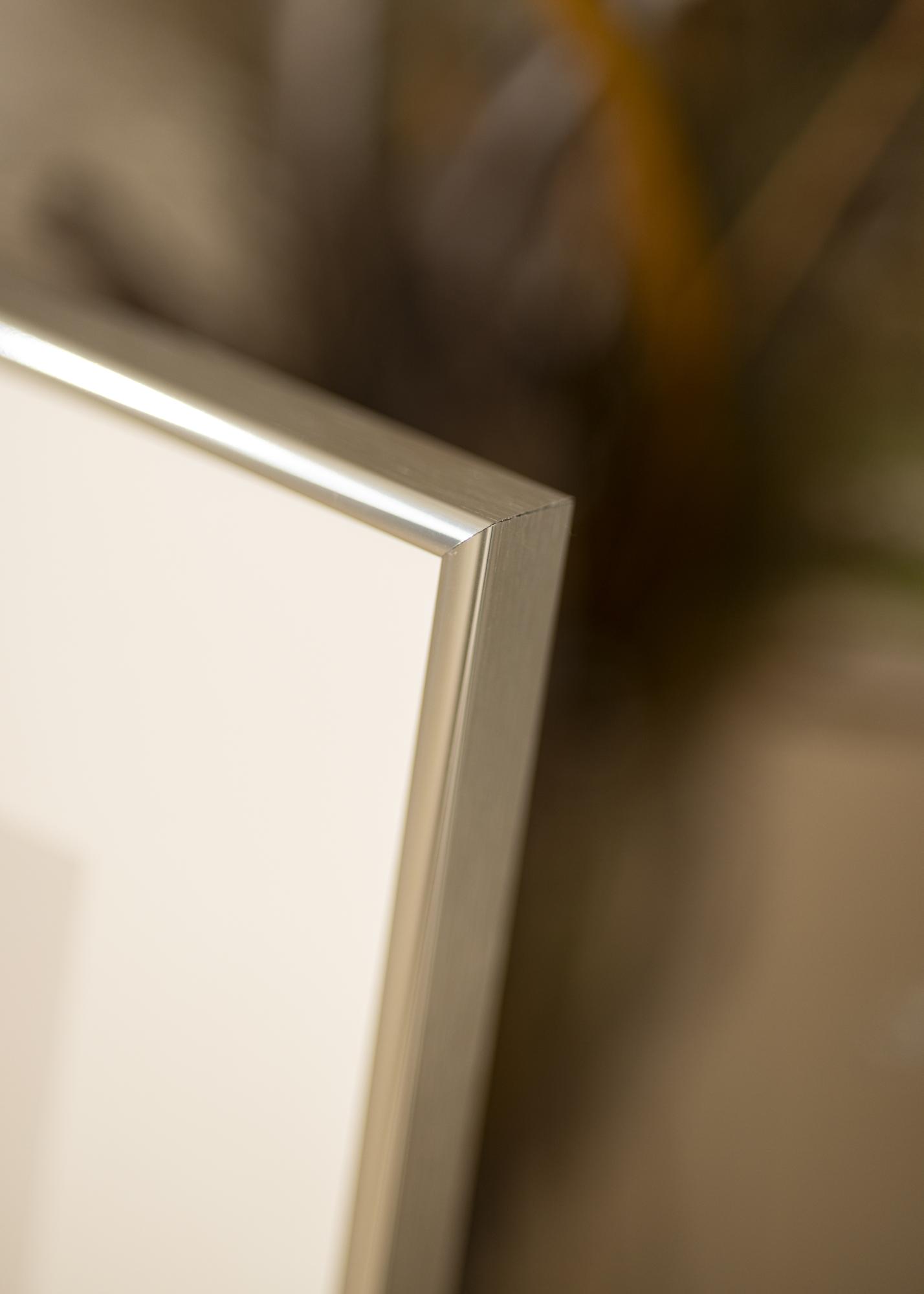 Ibiza est l'un de nos cadres les plus étroits avec une largeur de seulement 5,9 mm et une belle finition argentée brillante avec des côtés brossés. Parfait lorsque vous recherchez un cadre très fin qui laisse le motif capter toute l'attention.