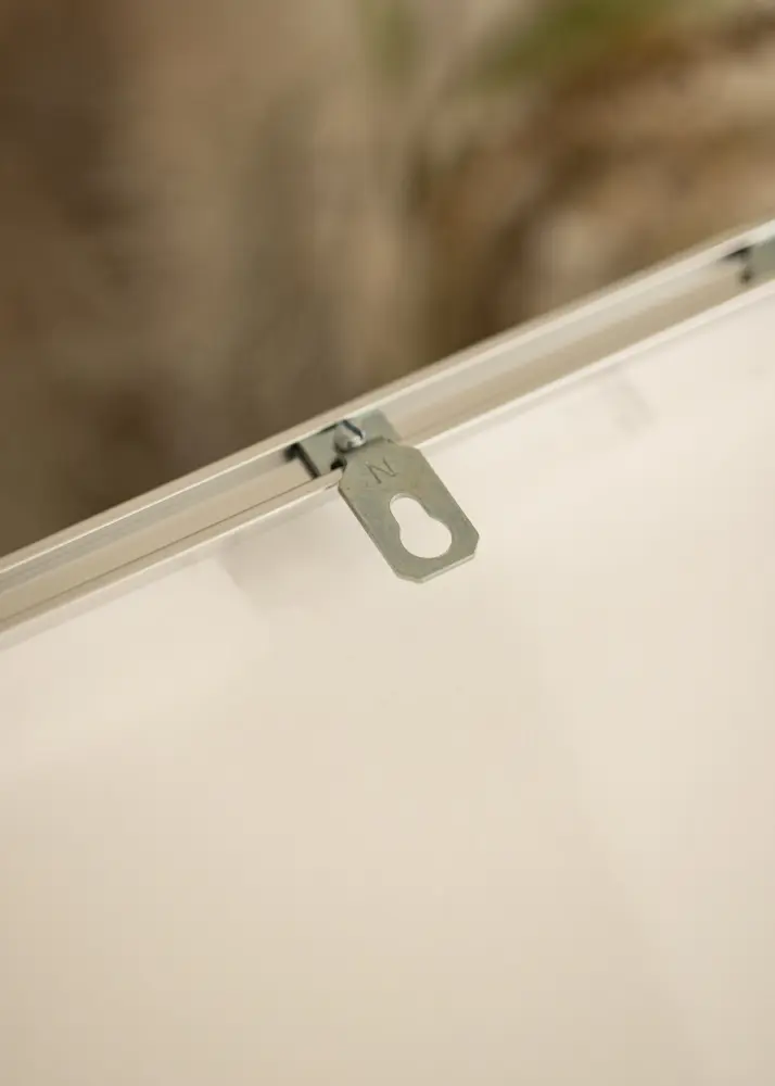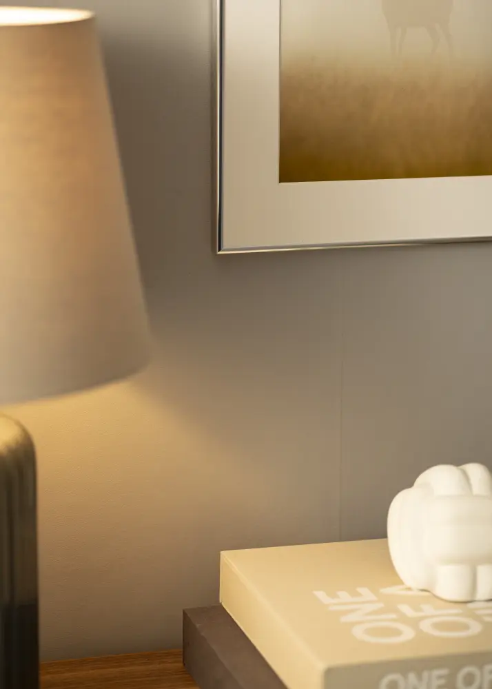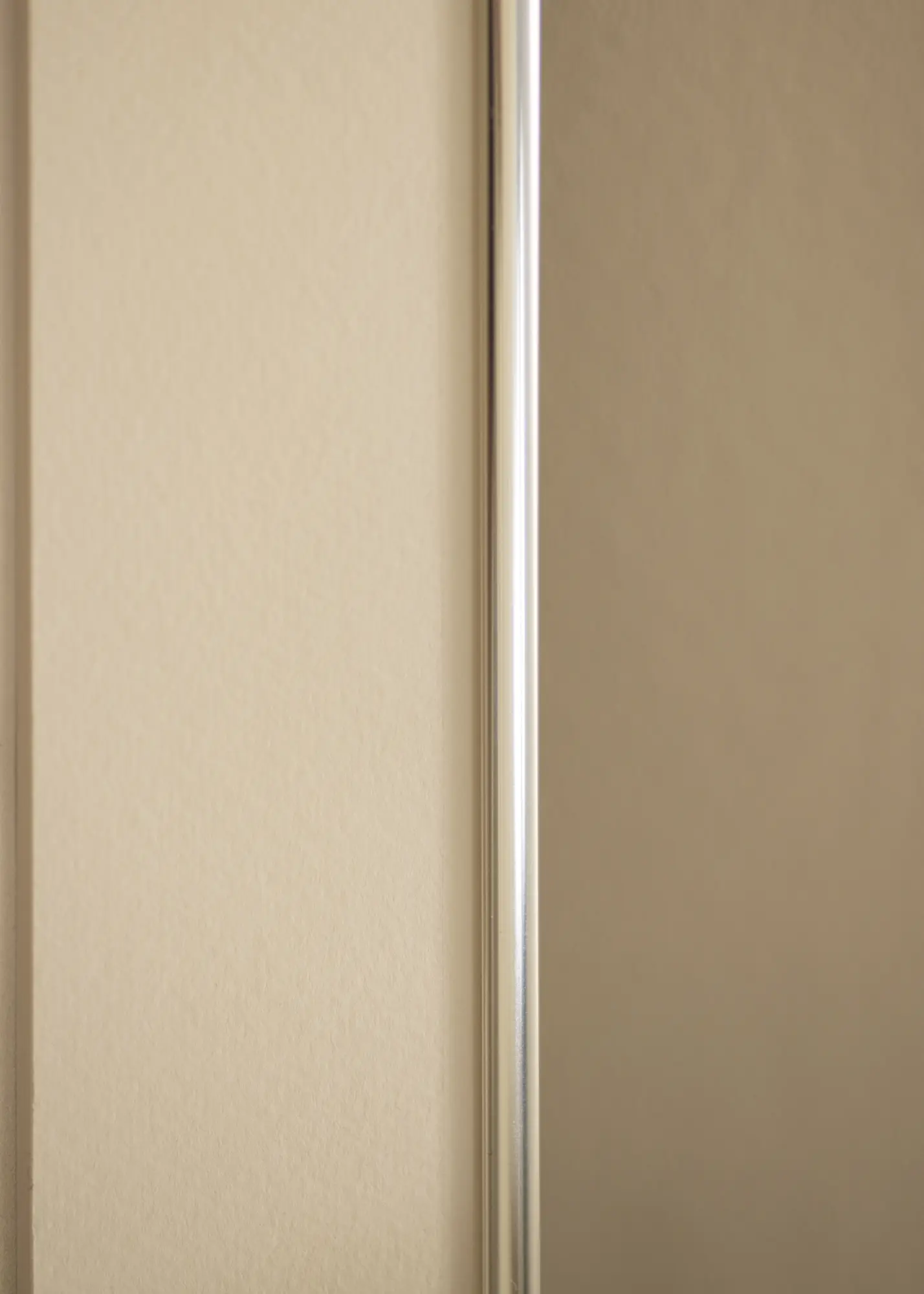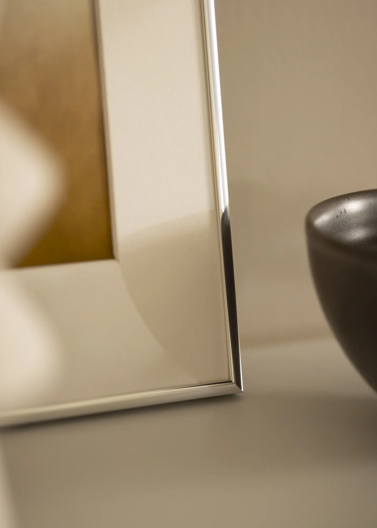 Ibiza est l'un de nos cadres les plus étroits avec une largeur de seulement 5,9 mm et une belle finition argentée brillante avec des côtés brossés. Parfait lorsque vous recherchez un cadre très fin qui laisse le motif capter toute l'attention.