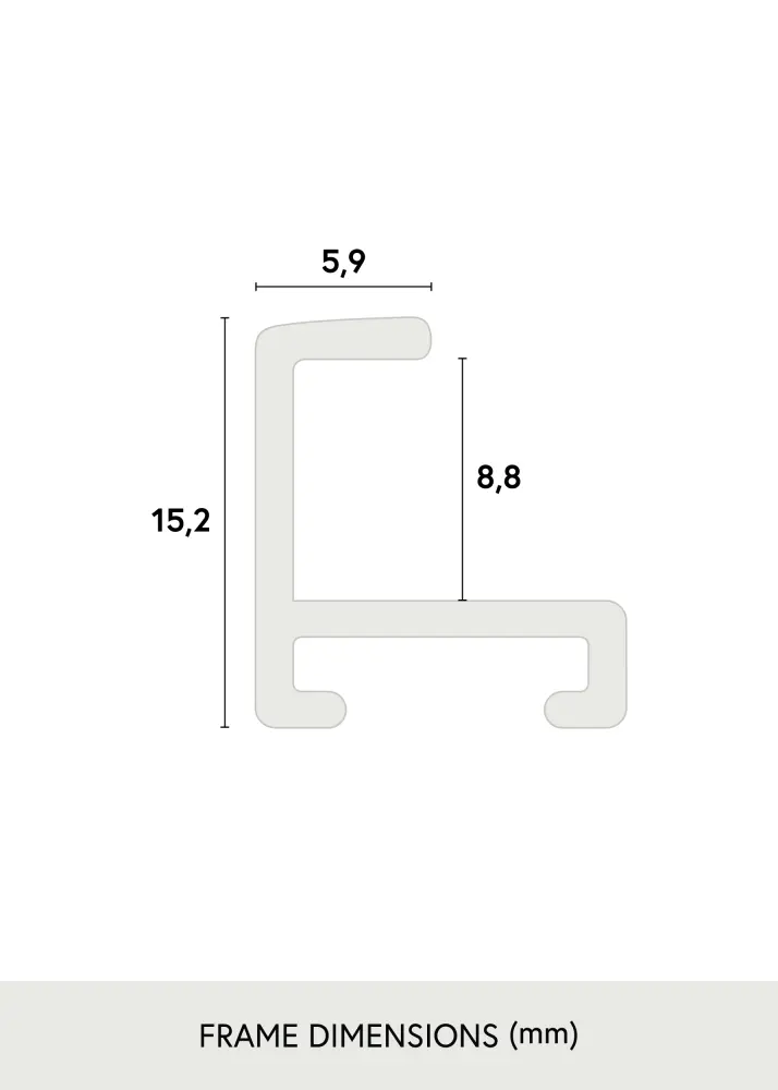 Ibiza est l'un de nos cadres les plus étroits avec une largeur de seulement 5,9 mm et une belle finition noire brillante avec des côtés brossés. Parfait lorsque vous recherchez un cadre très fin qui laisse le motif capter toute l'attention.