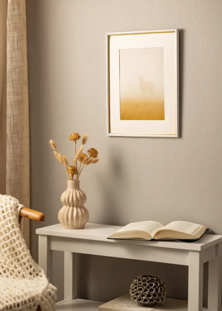 Jazz Blanc est un joli cadre qui donne une sensation de luxe et d'élégance. Avec son profil blanc avec un bord doré le plus proche du motif, c'est un excellent choix pour les photos de personnes ou d'animaux de compagnie.