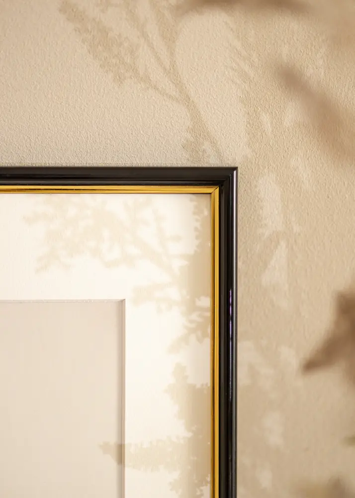 Jazz Noir a un design classique avec un bord intérieur de couleur dorée, ce qui donne à l'image encadrée un aspect élégant.