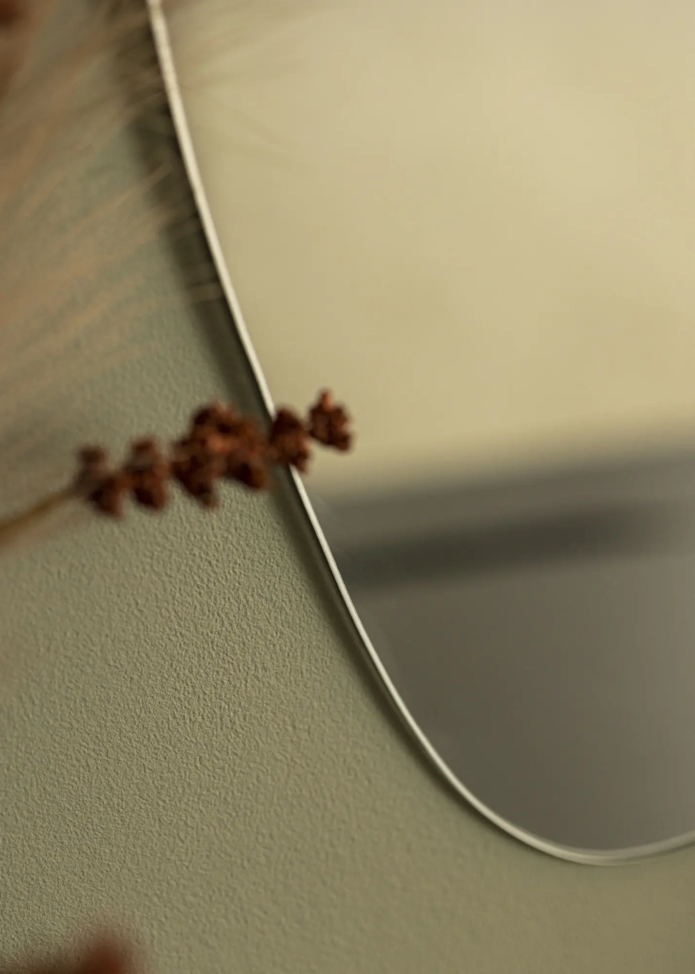 Voici un miroir de forme oblongue dans une jolie forme asymétrique, ce qui en fait un superbe détail d'intérieur convenant parfaitement aux foyers modernes. Le miroir est doté de supports muraux pratiques situés au dos et peut être accroché quel que soit le mur dans la pièce désirée – il peut aussi être utilisé dans une salle de bain !