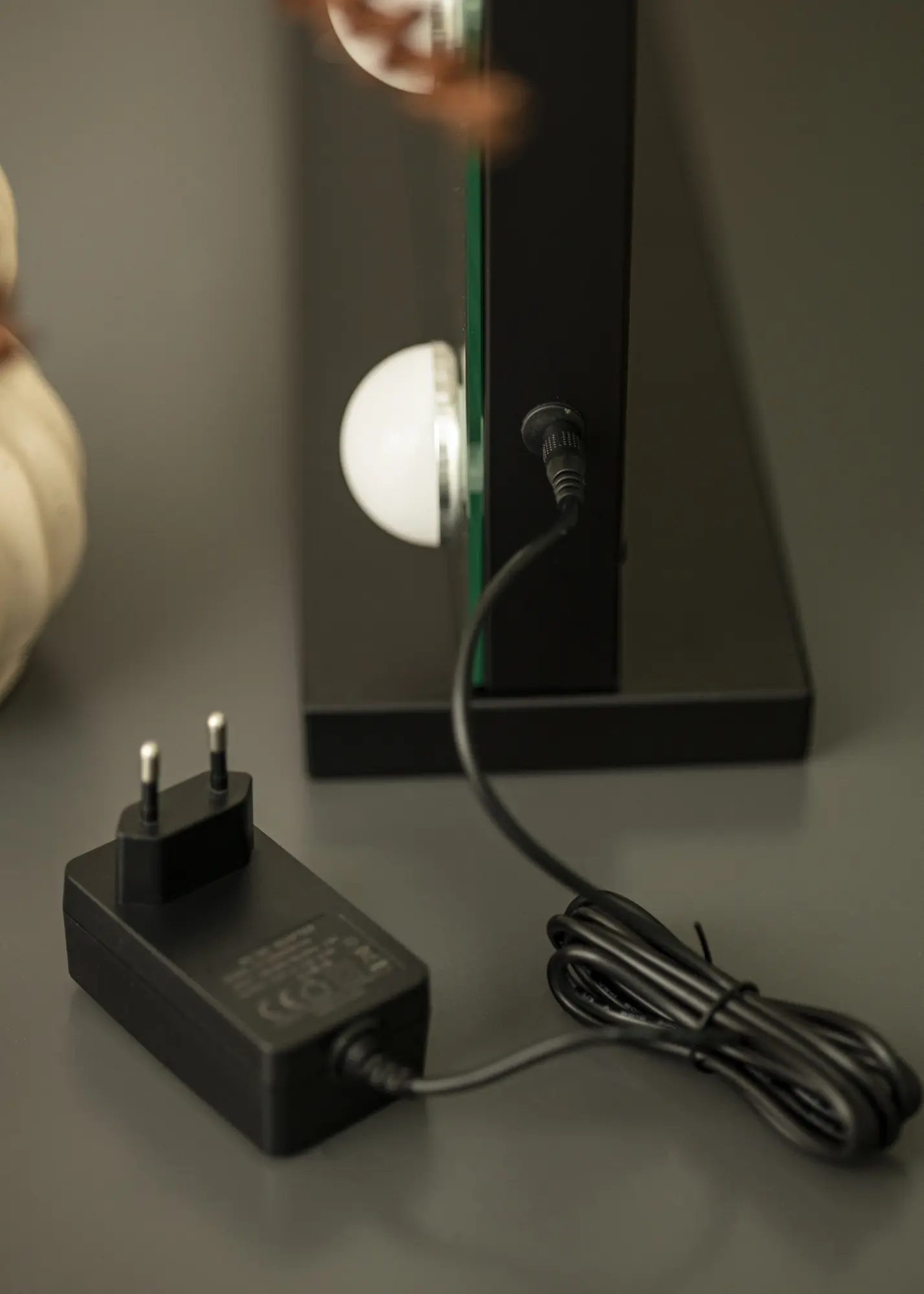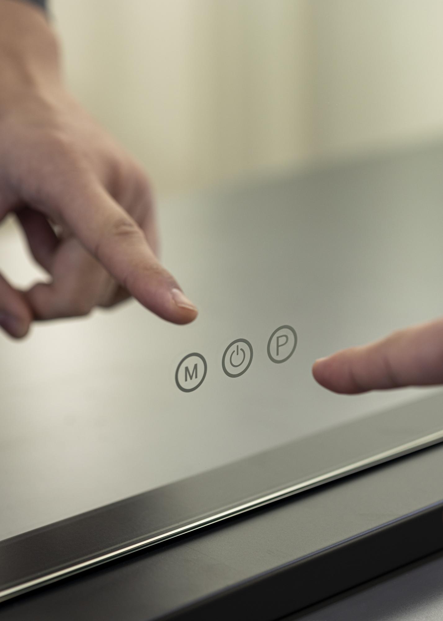 À l'aide des boutons tactiles situés à l'avant du miroir, vous pouvez allumer ou éteindre l'éclairage, modifier la température de couleur et atténuer la lumière à une luminosité qui vous convient. Lorsque vous vous maquillez, par exemple, vous pouvez définir une luminosité plus forte, tandis qu'une lumière plus tamisée est plus appropriée comme éclairage d'ambiance. Les réglages de la lumière se font avec les boutons "M" et "P", "M" pour régler la température de couleur et "P" pour la luminosité. Vous avez le choix entre trois températures de couleur ; lumière chaude, froide et naturelle. Branchez le miroir via une prise.