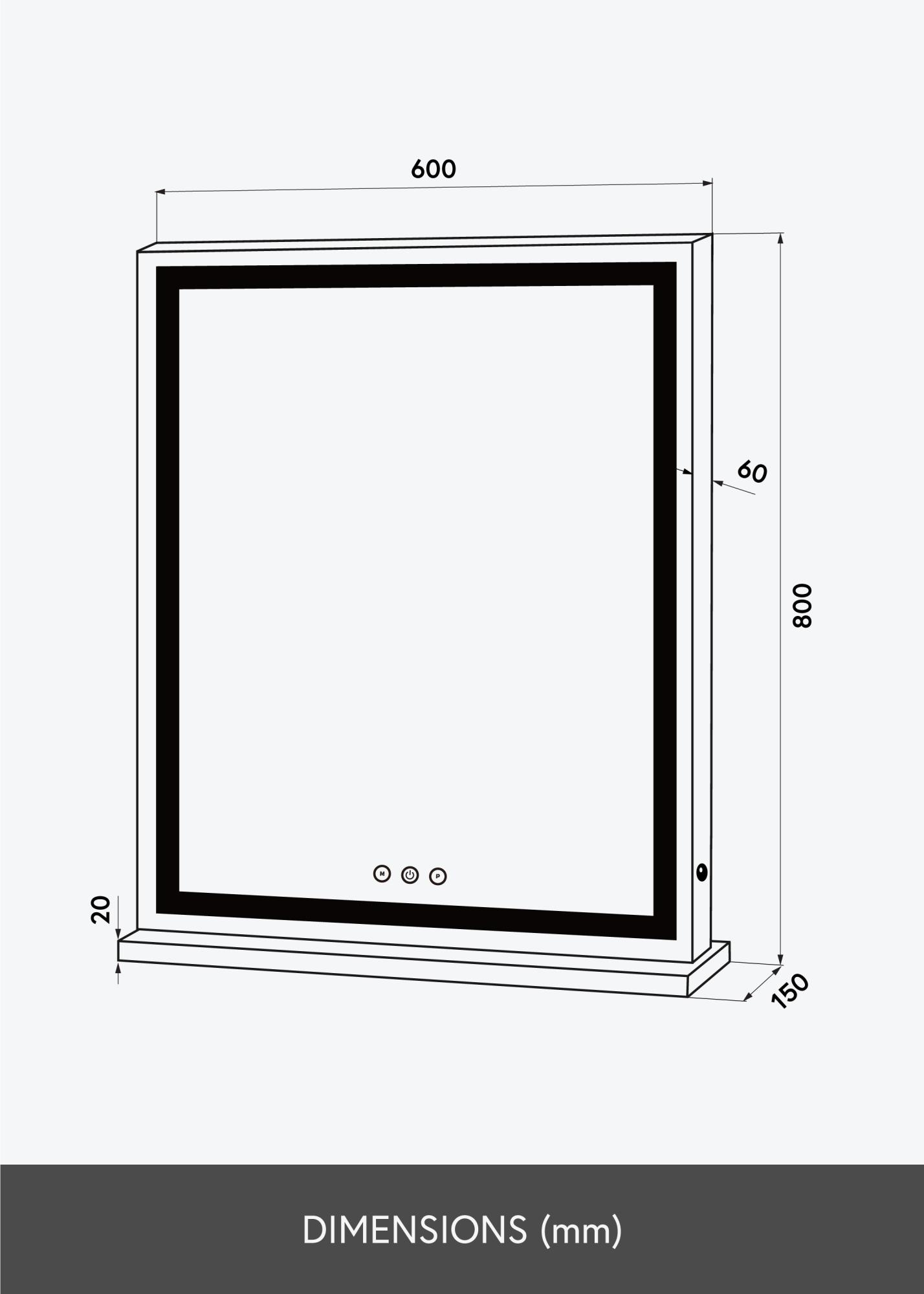 Ce miroir de maquillage combine parfaitement minimalisme et tendance. Il a une forme classique et un ruban LED moderne qui crée un encadrement autour de la surface réfléchissante de 80x60 cm. Le miroir dispose d'un socle qui peut être retiré, vous pouvez donc choisir de poser le miroir sur une table ou de l'accrocher au mur. Il se monte en position verticale.