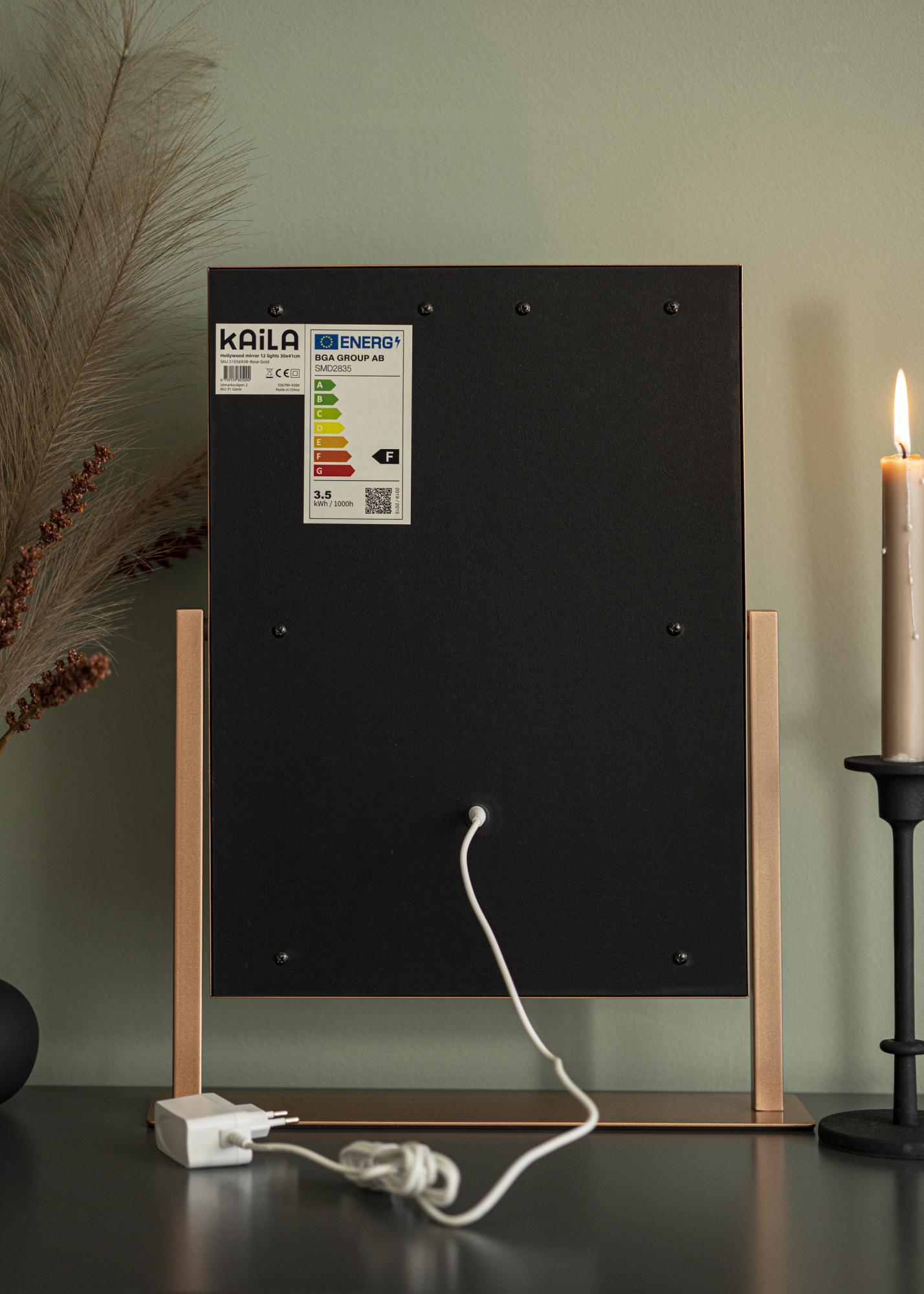 KAILA Miroir de maquillage Hollywood 12 Or rosé 30x41 cm