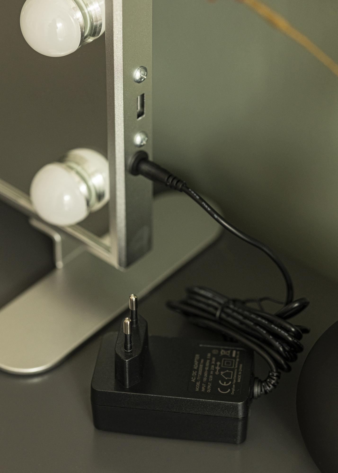 Voici un miroir de maquillage élégant qui deviendra un joli détail décoratif quel que soit la pièce dans laquelle il est placé. Le fin cadre argenté qui entoure la surface réfléchissante de 60x50 cm lui donne une expression très distinguée, tandis que les 14 diodes LED rondes placées sur le pourtour du miroir apporte une sensation vraiment exclusive. Sur un côté du miroir se trouve un port USB qui vous permet de recharger vos objets intelligents via une connexion USB.
