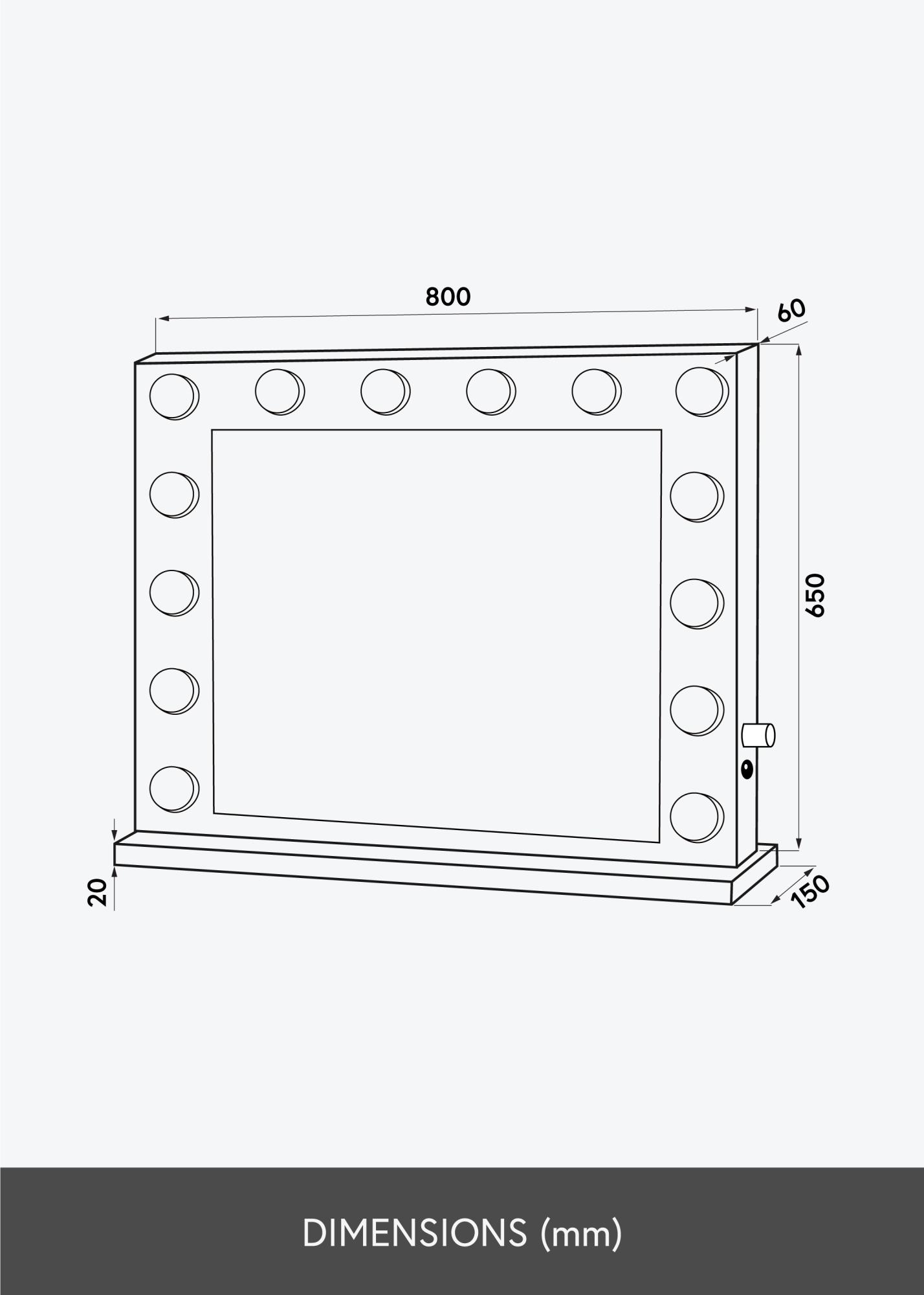 KAILA Miroir de maquillage Hollywood 14 E27 Noir 80x65 cm