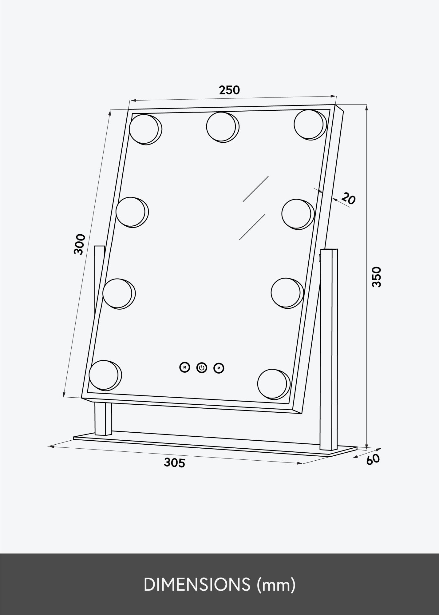 Ce miroir à maquillage est idéal pour ceux qui désirent un bon éclairage pour s'asseoir devant un miroir. Son design inspiré par Hollywood, avec de grosses ampoules LED encadrant la surface réfléchissante, permet à ce miroir de devenir un bel éclairage décoratif dans le salon ou bien le hall d'entrée. la surface réfléchissante du miroir peut être inclinée vers le haut ou le bas pour plus de possibilités dans son utilisation.