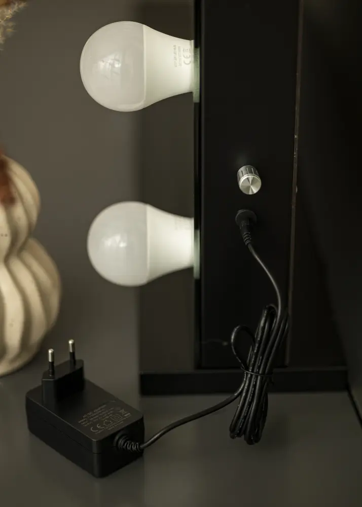 Positionnez le miroir debout sur la commode de la chambre à coucher, la table d'appoint dans le salon, ou bien sur toute autre surface plane où vous désirez avoir un joli miroir avec éclairage. Le pied de support étant amovible, vous avez également la possibilité d'accrocher le miroir sur le mur. Le raccordement électrique se fait avec une prise.