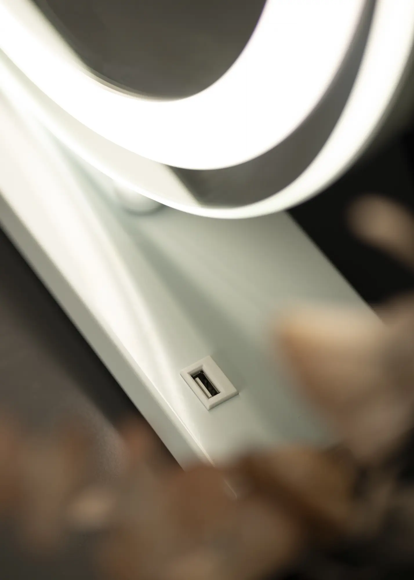 Ce miroir a une caractéristique supplémentaire - une prise USB pour charger les appareils de type smartphones. De cette façon, vous pouvez recharger votre téléphone et en même temps l'avoir à portée de main lorsque vous vous maquillez et que vous vous préparez pour la journée. Le miroir se branche à une prise.