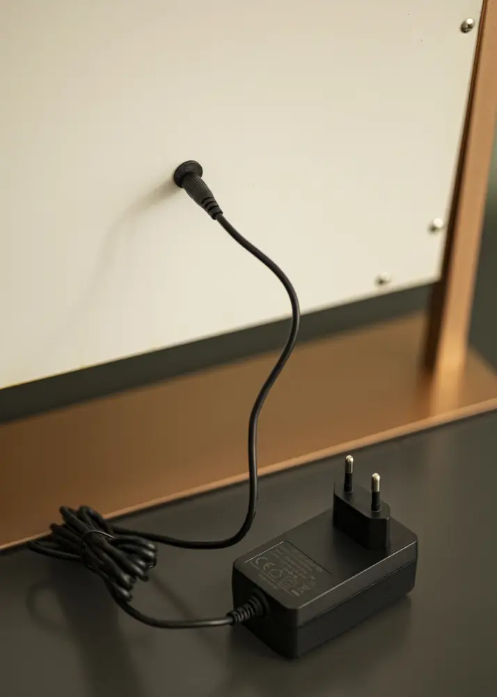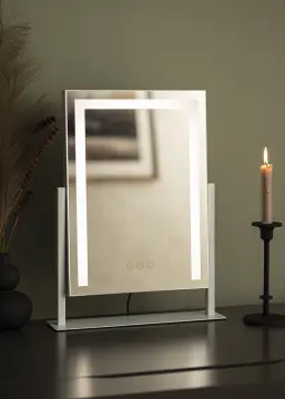 Ce miroir de maquillage se place à la verticale dans votre coin maquillage, dans le salon ou dans toute autre pièce que vous souhaitez parer d'un joli miroir. La façon dont le miroir est conçu vous permet également d'incliner la surface réfléchissante. Le raccordement électrique se fait via une prise de courant.