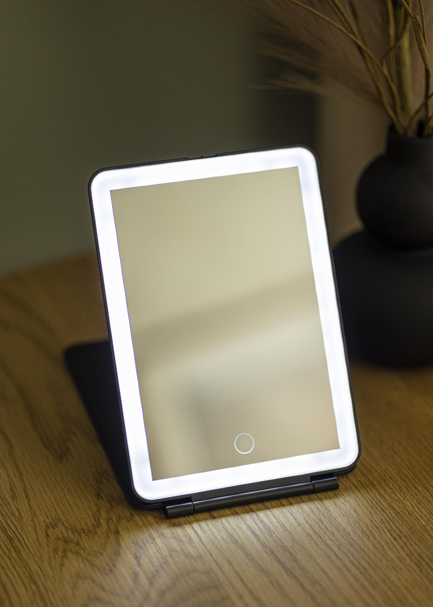Grâce à ce miroir à maquillage, vous pouvez vous maquiller et vous refléter où que vous soyez : il est conçu pour être léger et compact, ce qui le rend facile à transporter avec vous lors de tous vos déplacements. De plus, il dispose d'un éclairage LED intégré afin que vous puissiez vous refléter correctement dans tous les environnements. Le miroir dispose d'une batterie intégrée qui se charge via une connexion USB. Pour vous donner d'avantage de possibilité, vous pouvez à la fois atténuer l'éclairage et régler sa température de couleur.