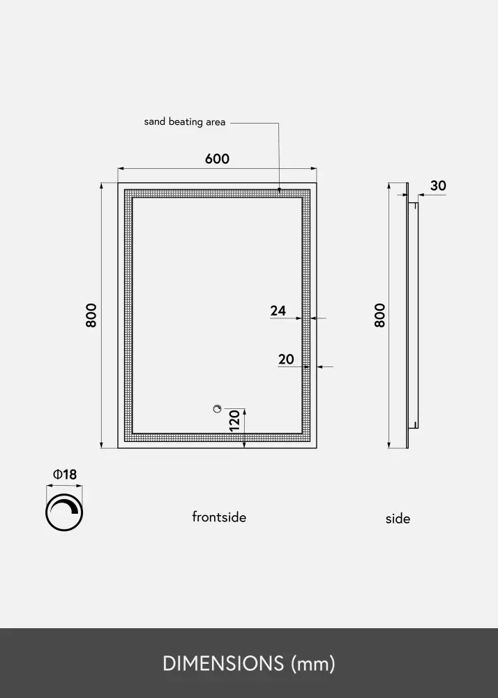 Ce miroir à maquillage est doté de supports muraux à l'arrière et s'accroche sur le mur à la verticale. Le miroir est conçu pour une installation permanente et doit être installé par un électricien. Afin que le miroir puisse fonctionner correctement, celui-ci doit être connecté à un interrupteur normal et non à un gradateur de lumière.