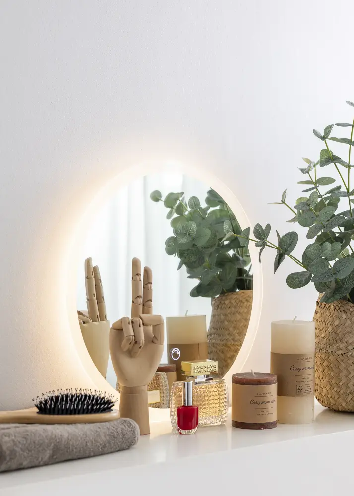 La LED est une source de lumière économe en énergie qui fournit une lumière uniforme et naturelle - ainsi ce miroir est parfaitement adapté comme miroir de salle de bain et comme miroir de maquillage, ou pourquoi pas comme miroir d'entrée ! Cet élégant miroir mesure 40 cm de diamètre et ne fait que 3cm d'épaisseur.