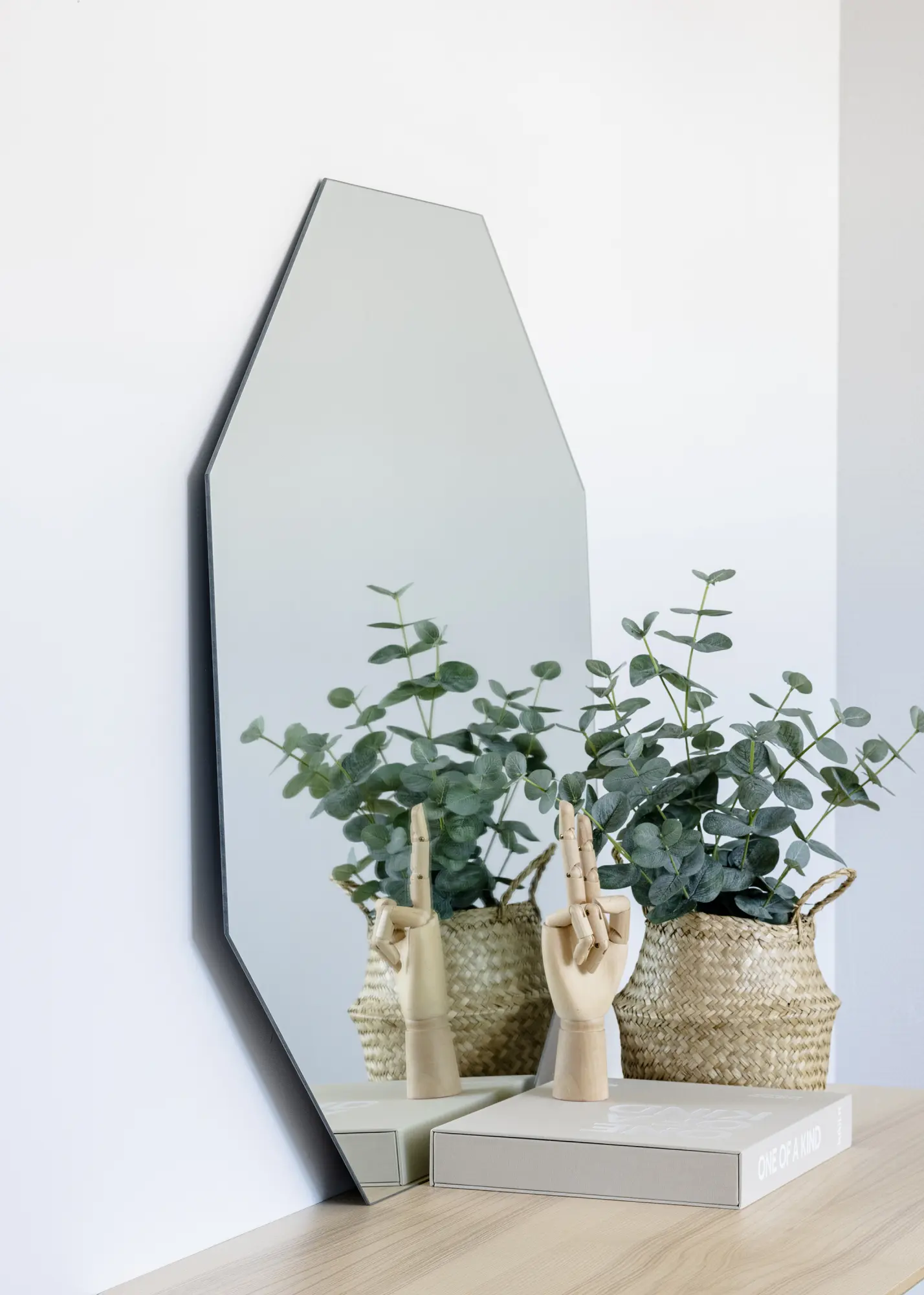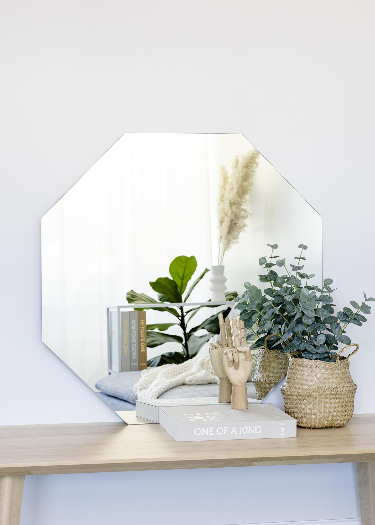 Ce magnifique miroir mural de KAILA est parfait pour le salon, l’entrée ou la chambre. La forme octogonale sans cadre offre un équilibre parfait entre minimalisme et côté glamour. En décorant avec différentes formes et matériaux, vous pouvez créer une dynamique dans la maison, et ce miroir angulaire offre un joli contraste avec d'autres meubles et détails décoratifs. Le miroir a un support mural et peut facilement être suspendu au mur.
