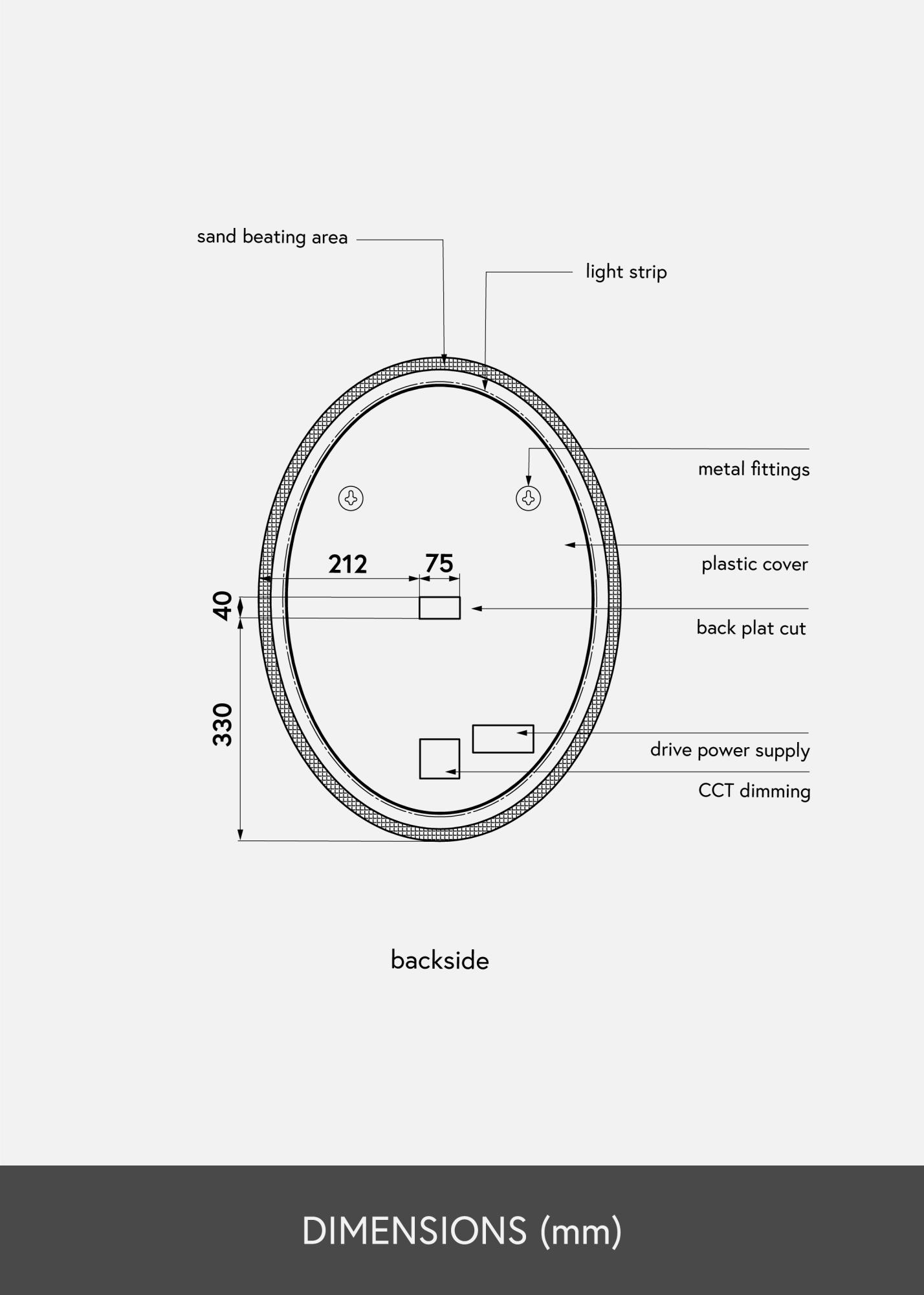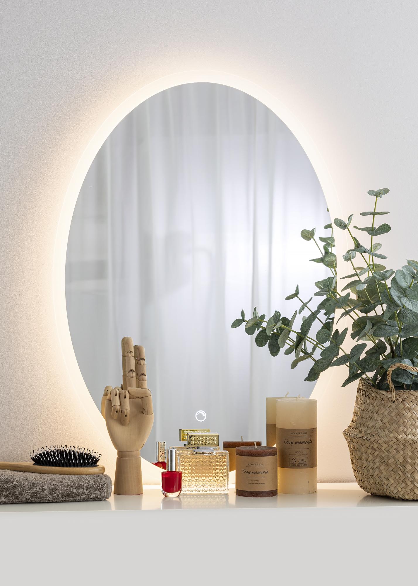 Voici un véritable miroir de salle de bain au design élégant avec sa forme ovale et son éclairage LED intégré ! L'éclairage LED intégré peut s'atténuer et la puissance s'ajuste facilement en appuyant sur le bouton tactile étanche disposé sur l'écran. L'éclairage projette une lumière dans une teinte blanche chaude en 3000K par l'arrière du miroir et projette une jolie lueur sur l'avant. La LED est une source de lumière écoénergétique qui fournit une lumière uniforme et naturelle. Le miroir est adapté pour les salles de bain. Le miroir de salle de bain est destiné à une installation fixe et se connecte à un interrupteur. Afin que le miroir puisse fonctionner correctement, celui-ci doit être connecté à un interrupteur normal et non à un gradateur de lumière.