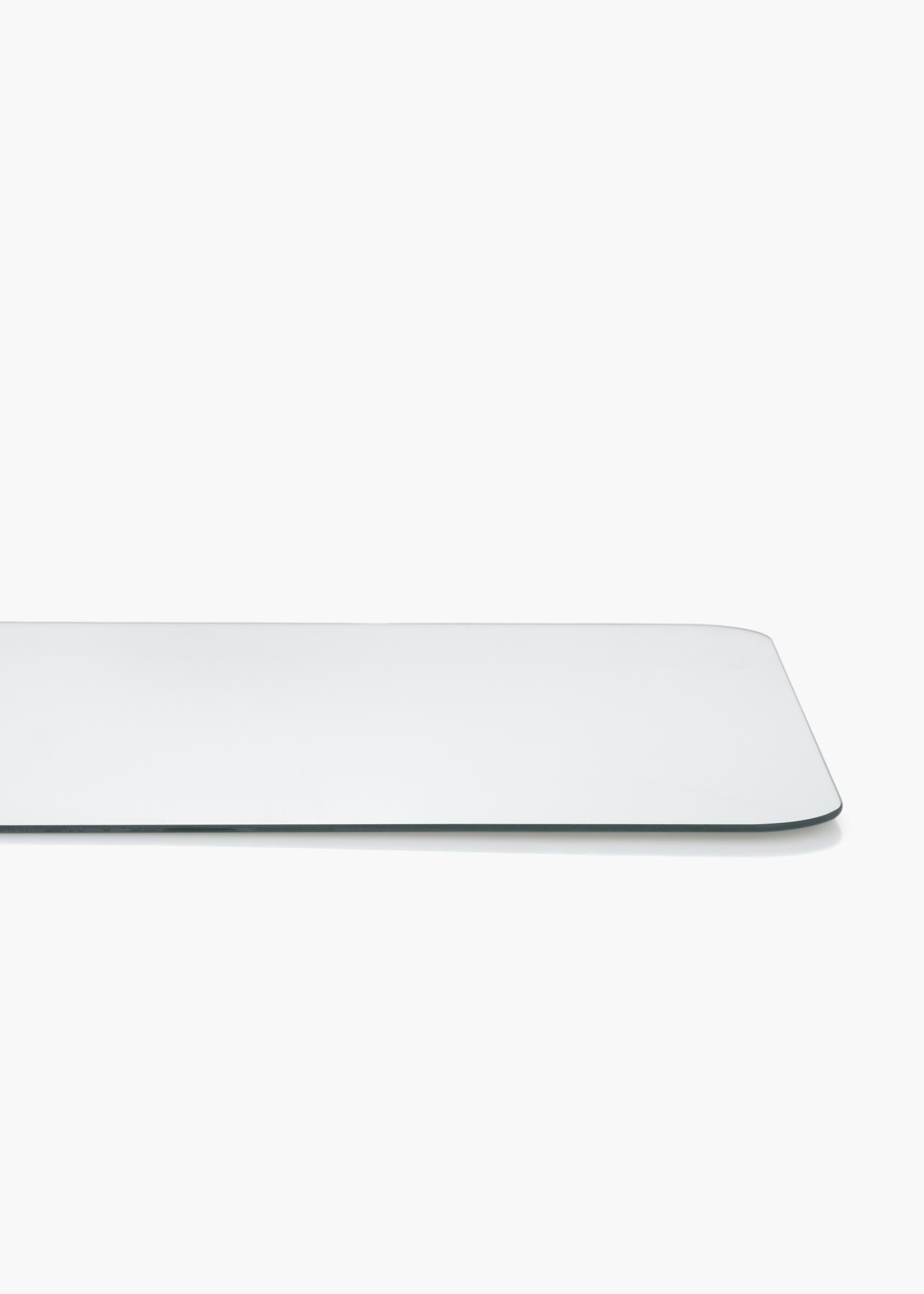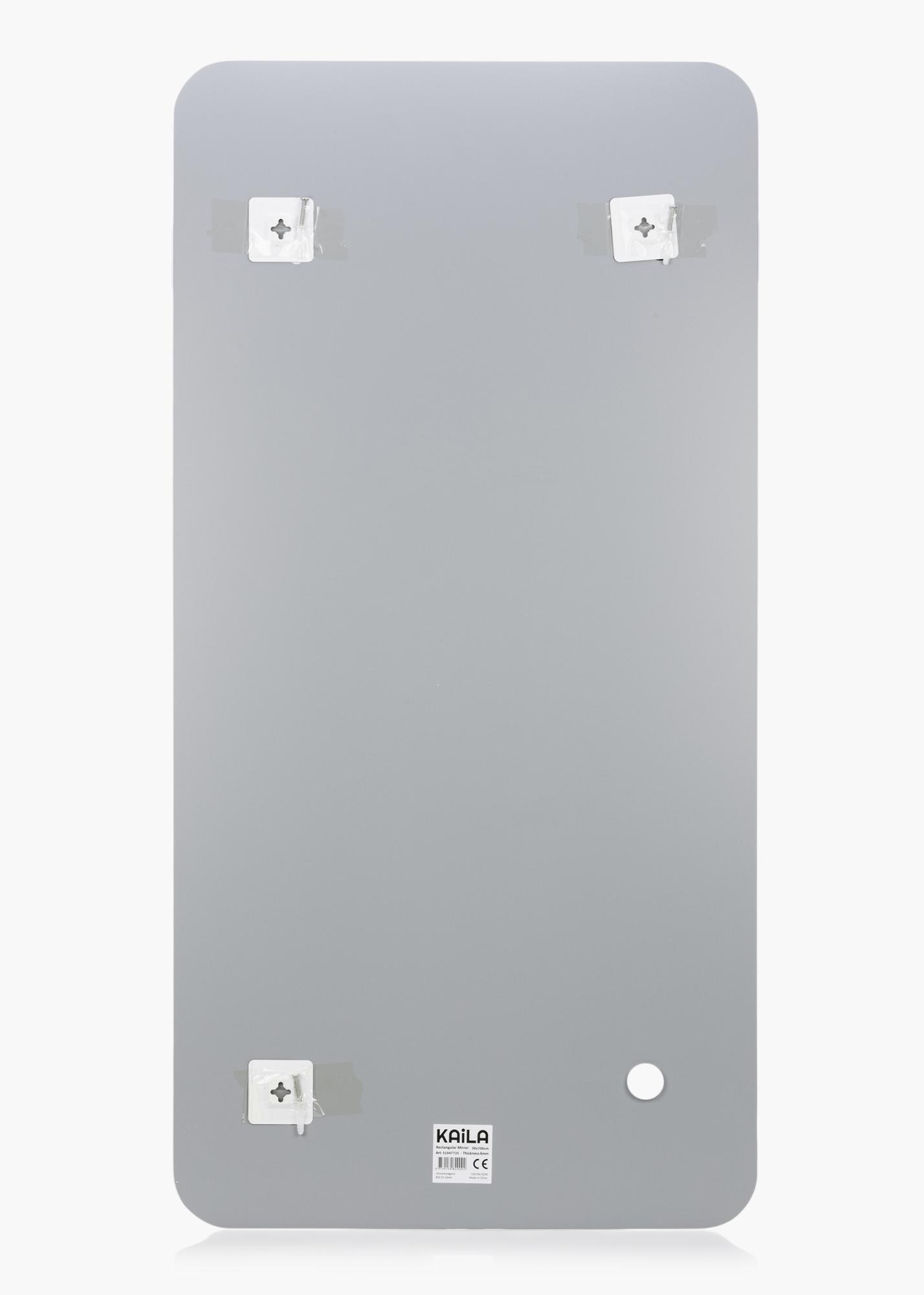 Il s'agit d'un miroir rectangulaire de KAILA, avec des coins arrondis décoratifs. La forme douce donne une expression élégante, qui est d’autant renforcée par l’absence de cadre du miroir. Le miroir mesure 50x100 cm.