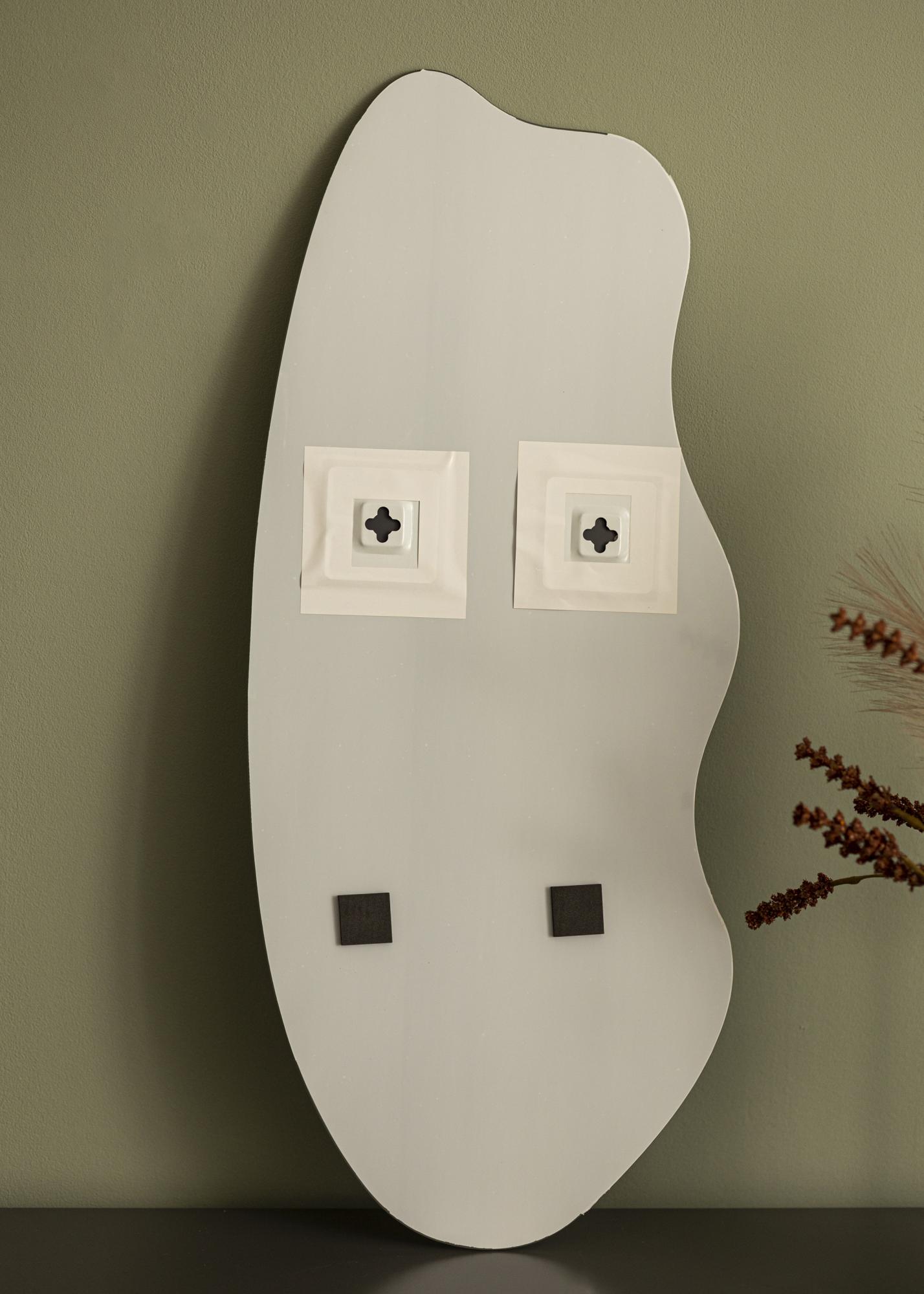 Le miroir est doté d'une fine surface réfléchissante de 4 mm. Ces supports muraux situés au revers du miroir permettent de l'accrocher à la verticale.