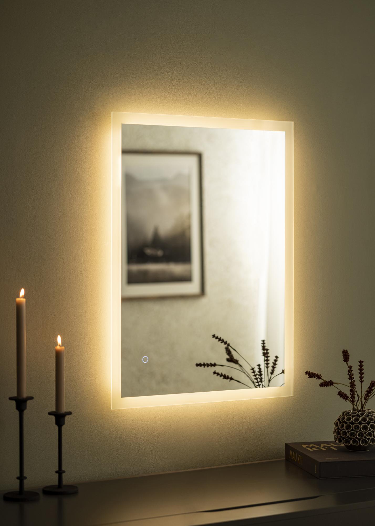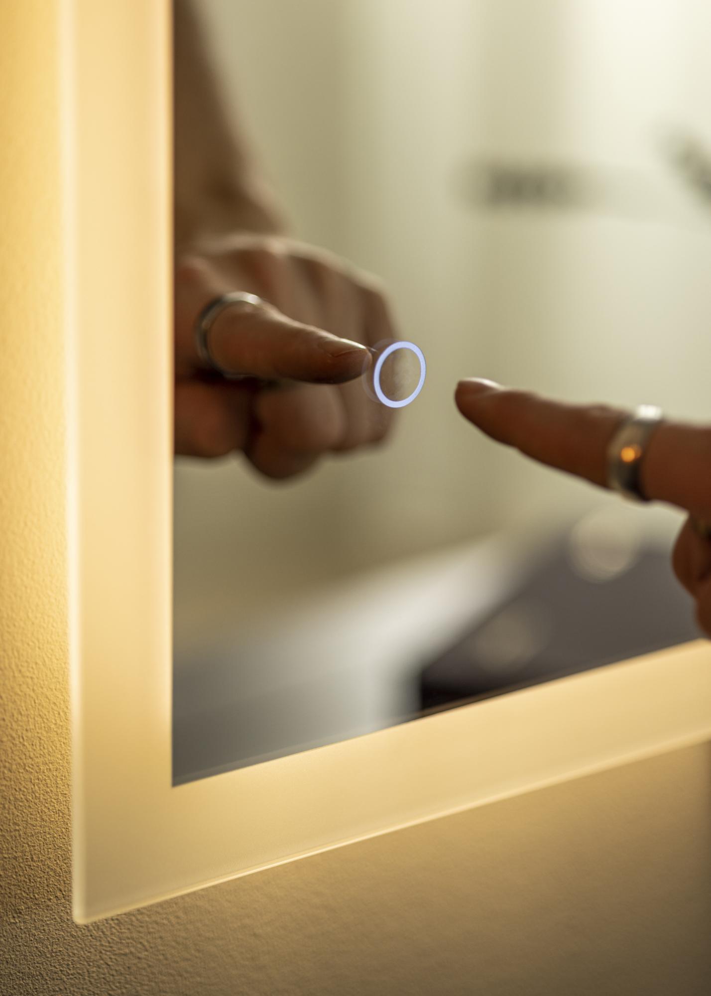 Ce miroir intemporel avec éclairage sublimera le style de votre salle de bain. Il dispose d'un ruban LED intégré situé à l'arrière du miroir, ce qui offre une lumière plus douce encadrant la surface réfléchissante. L'éclairage fournit une lueur en 3000K que vous pouvez atténuer en maintenant le bouton tactile situé dans un coin du miroir pendant quelques secondes. La luminosité peut être réglée de 10% à 100% de sa capacité.