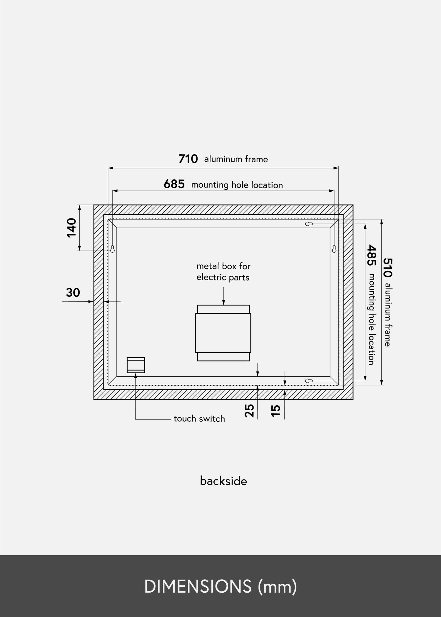 Ce miroir se fixe au mur en position verticale. Le miroir est destiné à une installation fixe et se relie à un interrupteur. Afin que le miroir puisse fonctionner correctement, il doit être connecté à un interrupteur habituel et non à un gradateur.