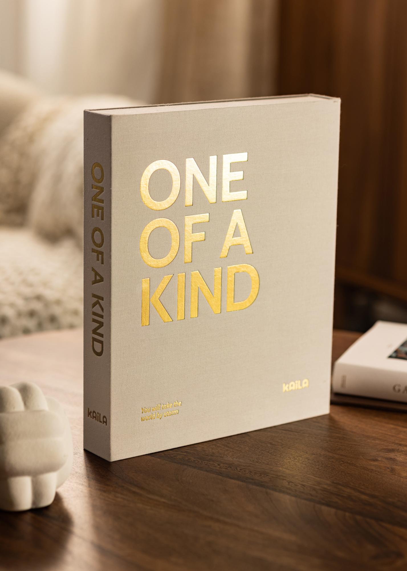 Développez-vos images et conservez-les dans un joli Coffee Table Photo Album! Cet album photo par KAILA est habillé de textile couleur crème et est designé comme une boîte luxueuse ce qui lui apporte un sentiment véritablement exclusif. De plus, cet album photo est superbe comme détail d'intérieur ! Sur le devant de l'album photo, il y a le titre ”ONE OF A KIND” imprimé en lettres capitales blanches et le sous-titre ”You will take the world by storm” ce qui rend cet album idéal pour les jolies photos de l'enfance ou bien pour offrir à quelqu'un de spécial, ou bien sûr pour vos propres merveilleux souvenirs.