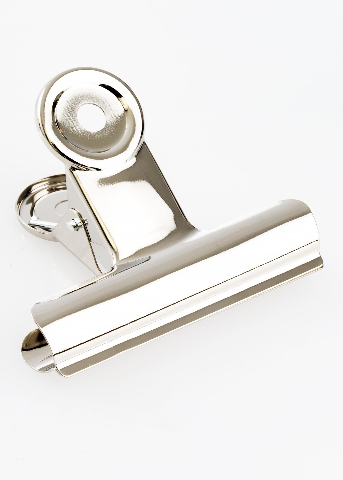 Cette pince en métal a une finition argentée moderne et brillante et est l'outil parfait pour créer une suspension tendance et minimaliste de posters ou d'affiches. L'ouverture flexible et appropriée de la pince vous permet de suspendre des motifs d'épaisseur variable, même le papier le plus fin. Et si vous avez un grand poster, il n'y a qu'à utiliser deux pinces en métal. Le design de la pince pour poster est épuré et élégant, et les trous dans le haut rond de la pince rendent le montage sur le mur simple et pratique : tout ce dont vous avez besoin est un petit clou ou une vis.