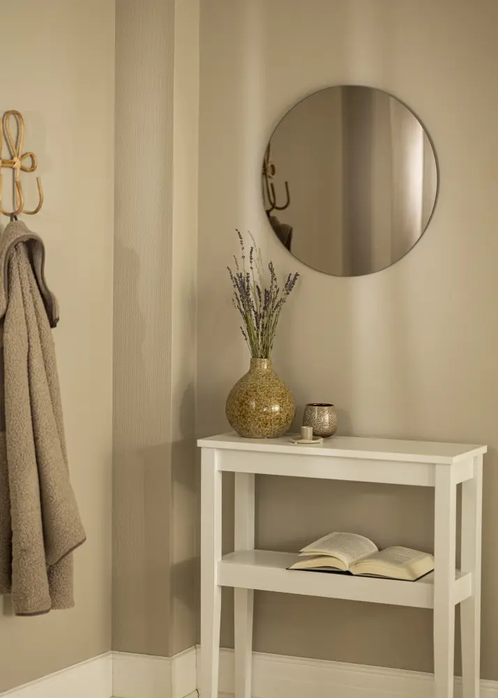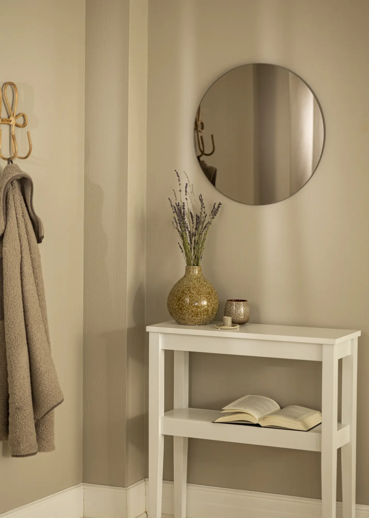 Ce miroir rond a un design fin sans cadre, ce qui donne un look élégant et exclusif qui rehausse chaque pièce. Avec un verre miroir dans une teinte bronze, le miroir mural a un aspect riche et chaleureux qui s'intègre parfaitement dans un intérieur moderne. Le miroir fait partie d'une collection de miroirs ronds de couleur bronze de KAILA et vous pouvez choisir entre sept tailles différentes pour trouver celle qui convient le mieux à votre intérieur. Ce modèle a un diamètre de 50 cm. Vous pouvez facilement suspendre le miroir dans l’entrée ou le salon à l'aide du support mural.