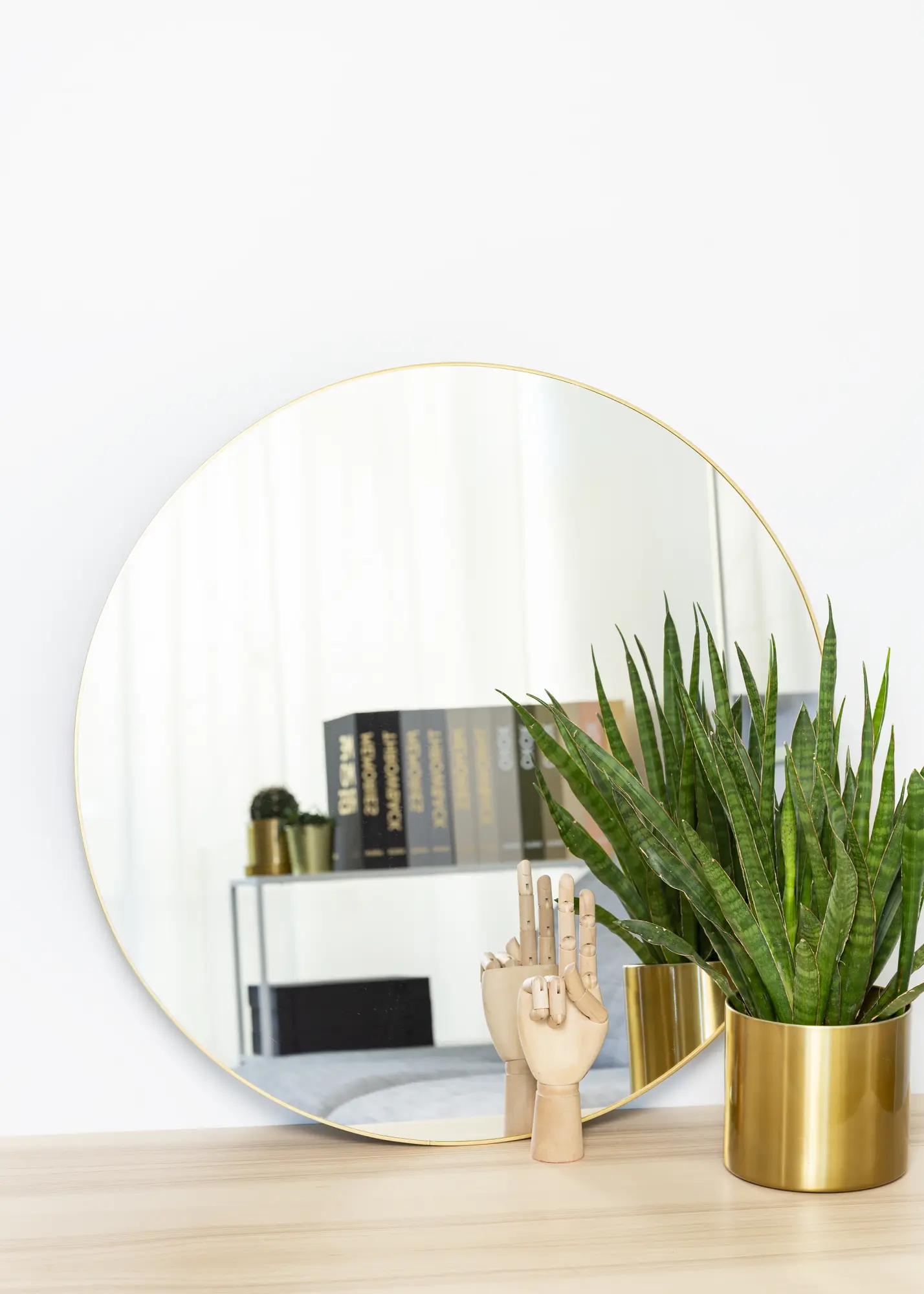 KAILA Thin Brass de la marque suédoise KAILA est un miroir mural décoratif avec un cadre épuré et de couleur laiton. Ce miroir rond apporte une sensation de luxe et de chaleur dans n'importe quelle pièce, à la fois seul sur le mur, comme avec d'autres beaux détails muraux.