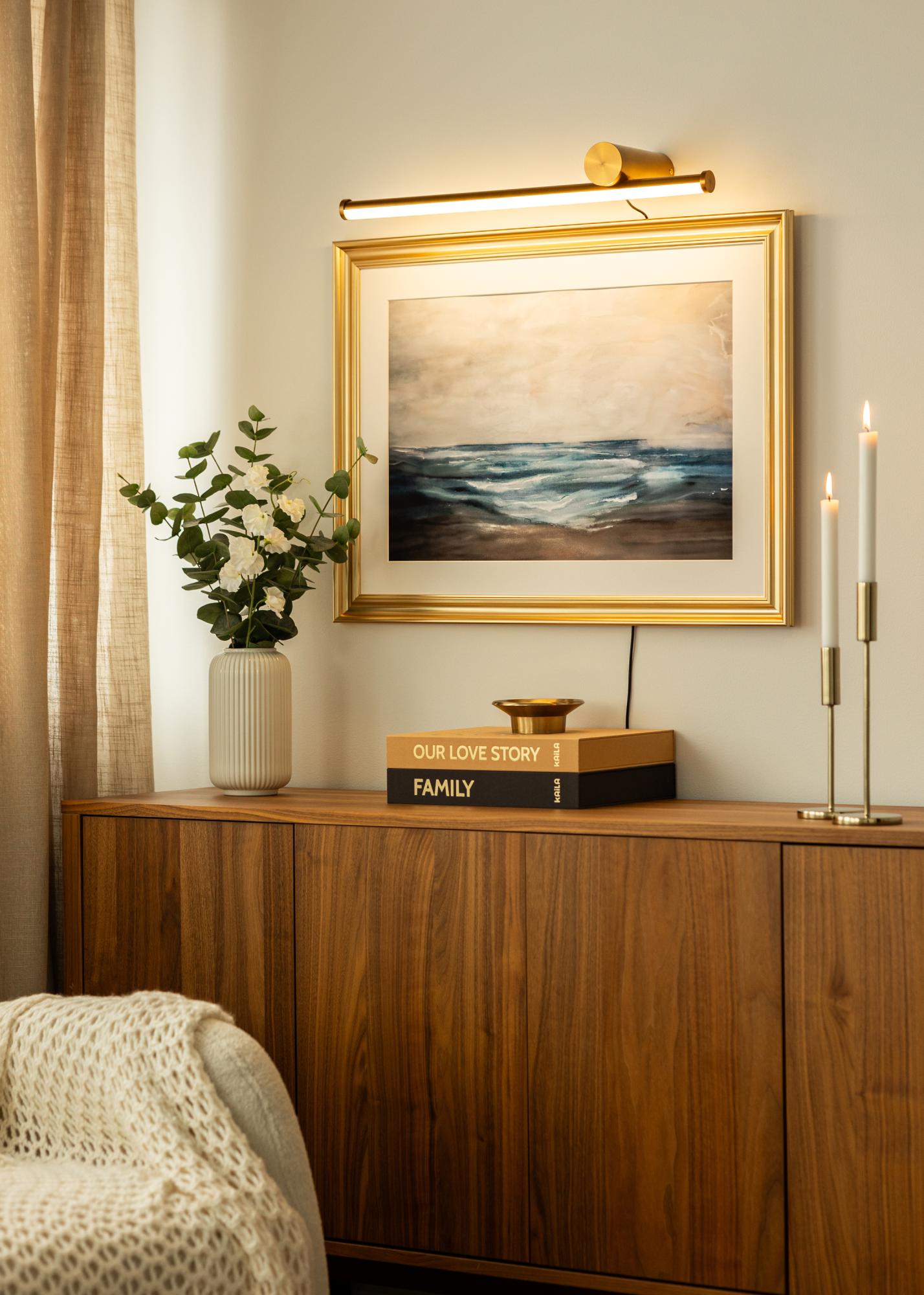 La source lumineuse se compose d'un éclairage LED qui offre une lumière blanc chaud avec une température de couleur de 3000K. Cela signifie que la lumière est agréable et crée une atmosphère accueillante sans être trop forte. L'intensité lumineuse est de 780 lumens, ce qui procure une lumière suffisamment forte pour mettre en valeur vos tableaux sans submerger l'espace. La lumière se répand uniformément sur la surface, permettant à tous les détails de l'œuvre d'art de ressortir naturellement.