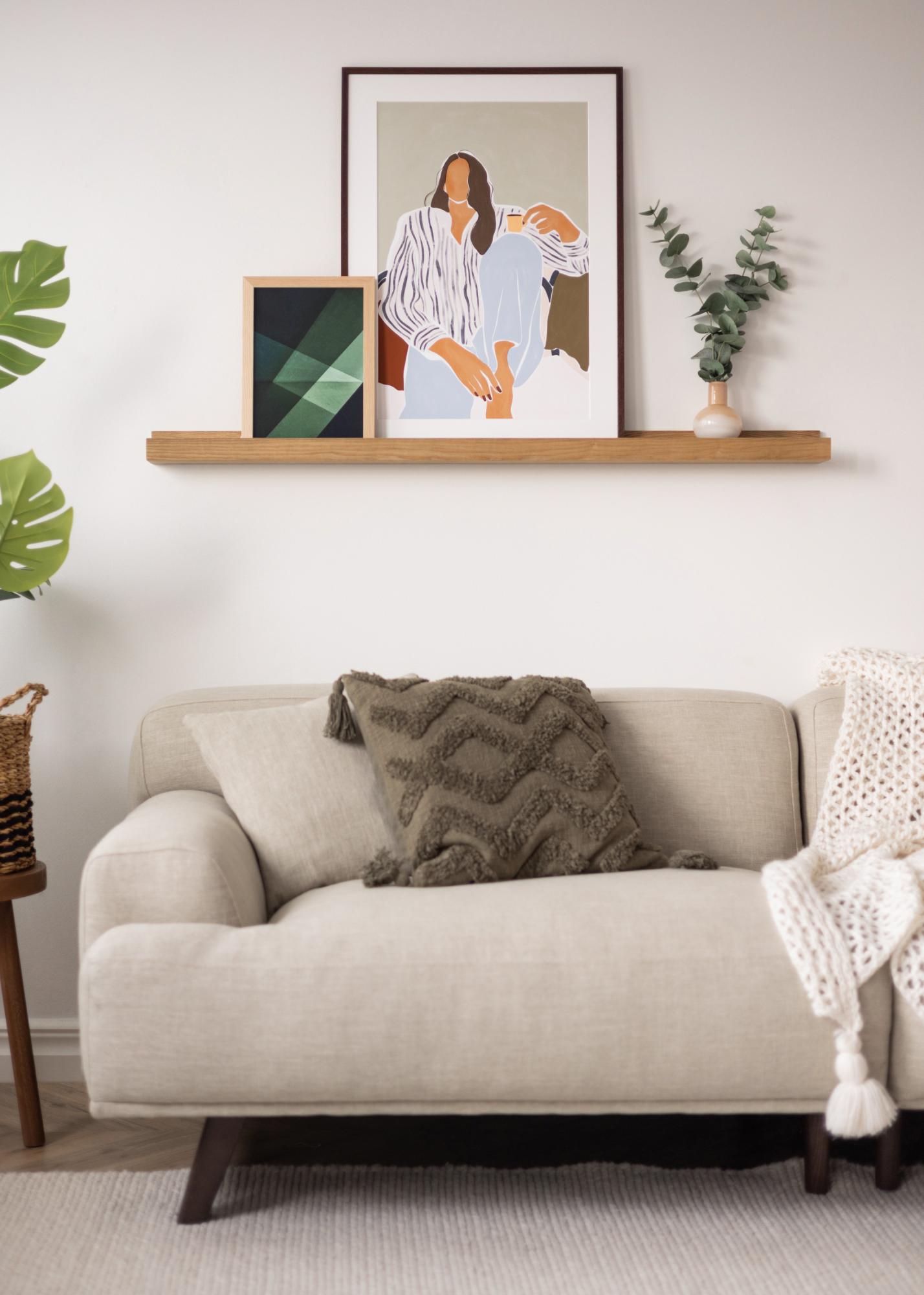 Avec une étagère à tableaux pratique, vous exposez vos œuvres d'art de manière élégante tout en ayant d'excellentes possibilités de varier votre décoration murale. Cette étagère à tableaux est fabriquée en chêne massif et présente un design épuré avec des lignes simples et droites. Le plateau de l'étagère comporte une rainure fraisée qui soutient vos tableaux et leur donne un bel angle lorsqu'ils sont inclinés contre le mur. L'étagère à tableaux est disponible en plusieurs longueurs, dont cette variante de 130 cm de long. L'étagère à tableaux est également équipée de trous prépercés, et pour simplifier encore plus l'installation, des vis et des chevilles appropriées sont fournies.