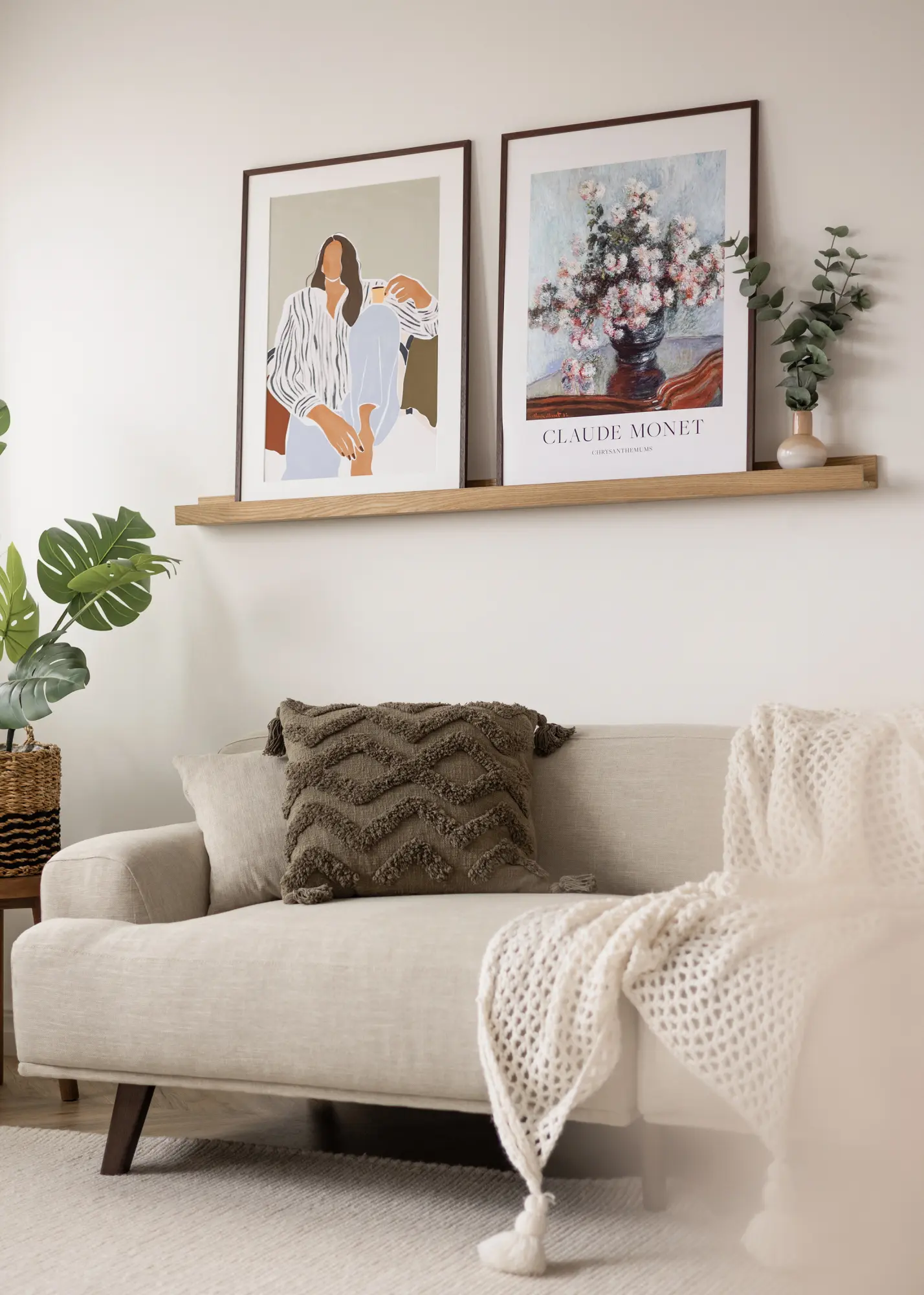 Avec une étagère à tableaux pratique, vous exposez vos œuvres de manière élégante et obtenez également d'excellentes possibilités de varier votre art mural. Cette étagère à tableaux est fabriquée en chêne massif et présente un design épuré avec des lignes simples et droites. La surface de l'étagère comporte une rainure fraisée qui soutient vos œuvres et leur donne un angle élégant lorsqu'elles sont inclinées contre le mur. L'étagère à tableaux est disponible en plusieurs longueurs, dont cette version mesure 140 cm de long. L'étagère à tableaux possède également des trous pré-percés, et pour rendre l'installation encore plus simple, des vis et chevilles appropriées sont fournies.