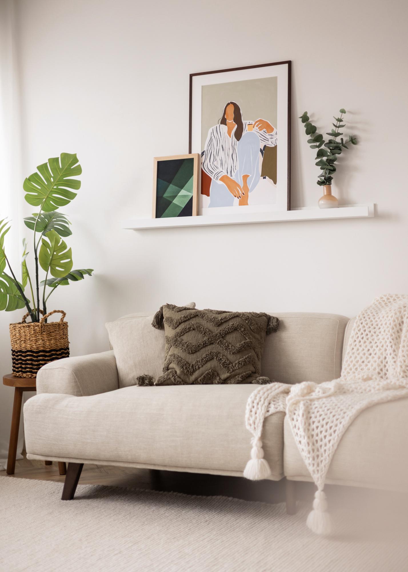Avec une étagère à tableaux pratique, vous pouvez facilement et joliment exposer et varier vos tableaux ! Cette élégante étagère à tableaux est fabriquée en MDF et est peinte en blanc avec une belle finition semi-brillante. Le design est épuré avec des lignes simples et droites et une sensation minimaliste intemporelle. Au centre de l'étagère court une rainure fraisée qui soutient vos tableaux et leur donne un angle parfait lorsqu'ils sont inclinés contre le mur. L'étagère à tableaux a également des trous pré-percés et l'emballage comprend des vis et des chevilles appropriées pour rendre le tout encore un peu plus facile !