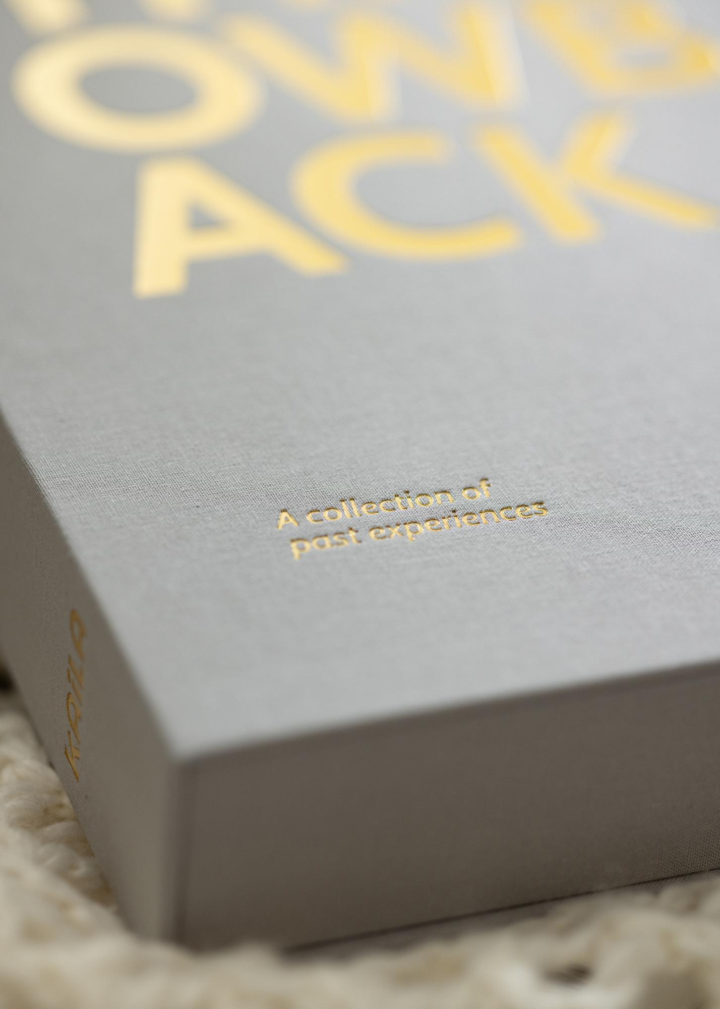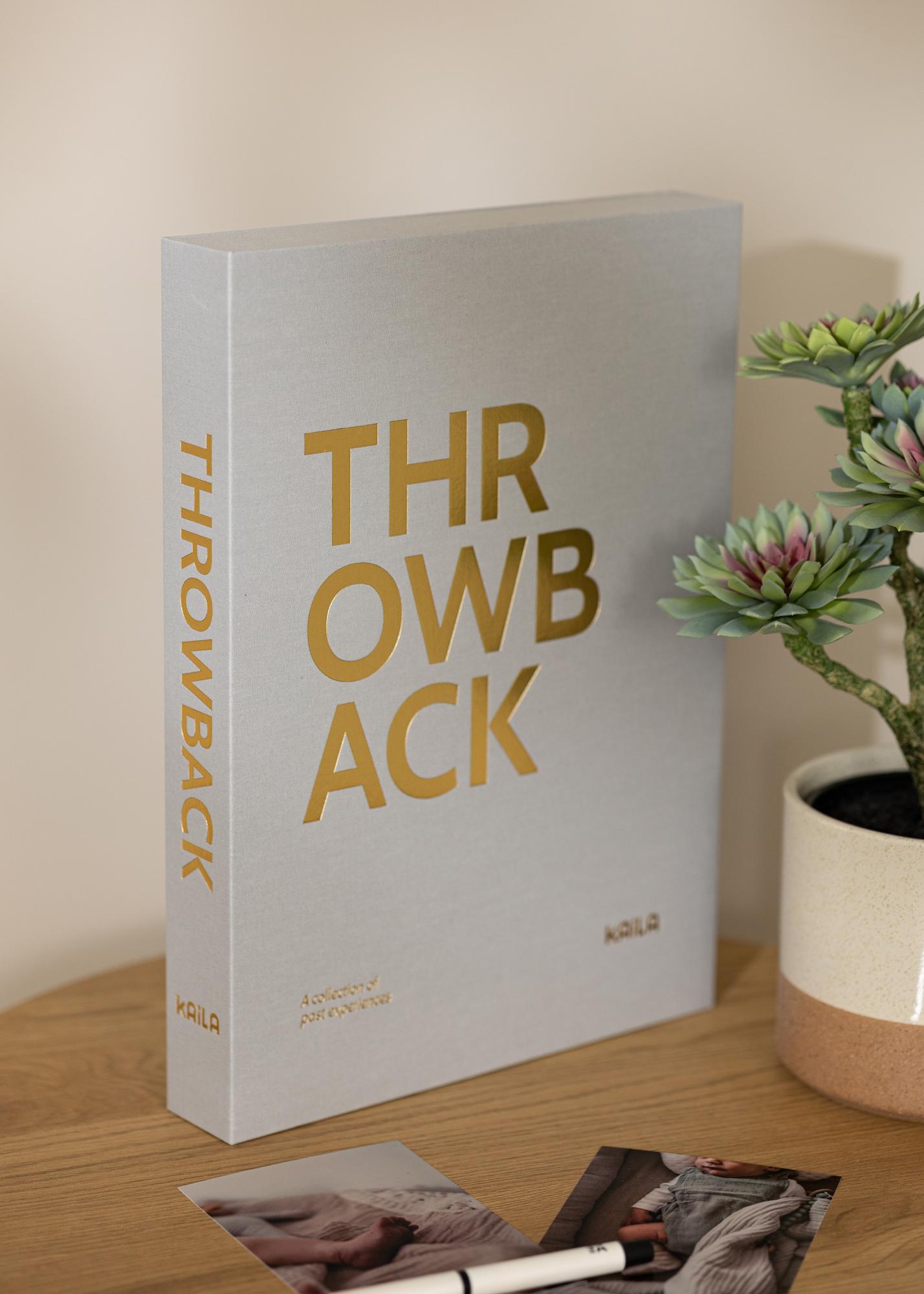 L'album est élégamment revêtu de tissu gris et sur le devant et le dos de l'album se trouve une impression dorée avec pour texte ”THROWBACK”. Le titre de l'album est même complété du sous-titre ”A collection of past experiences” imprimé dans le coin inférieur gauche.