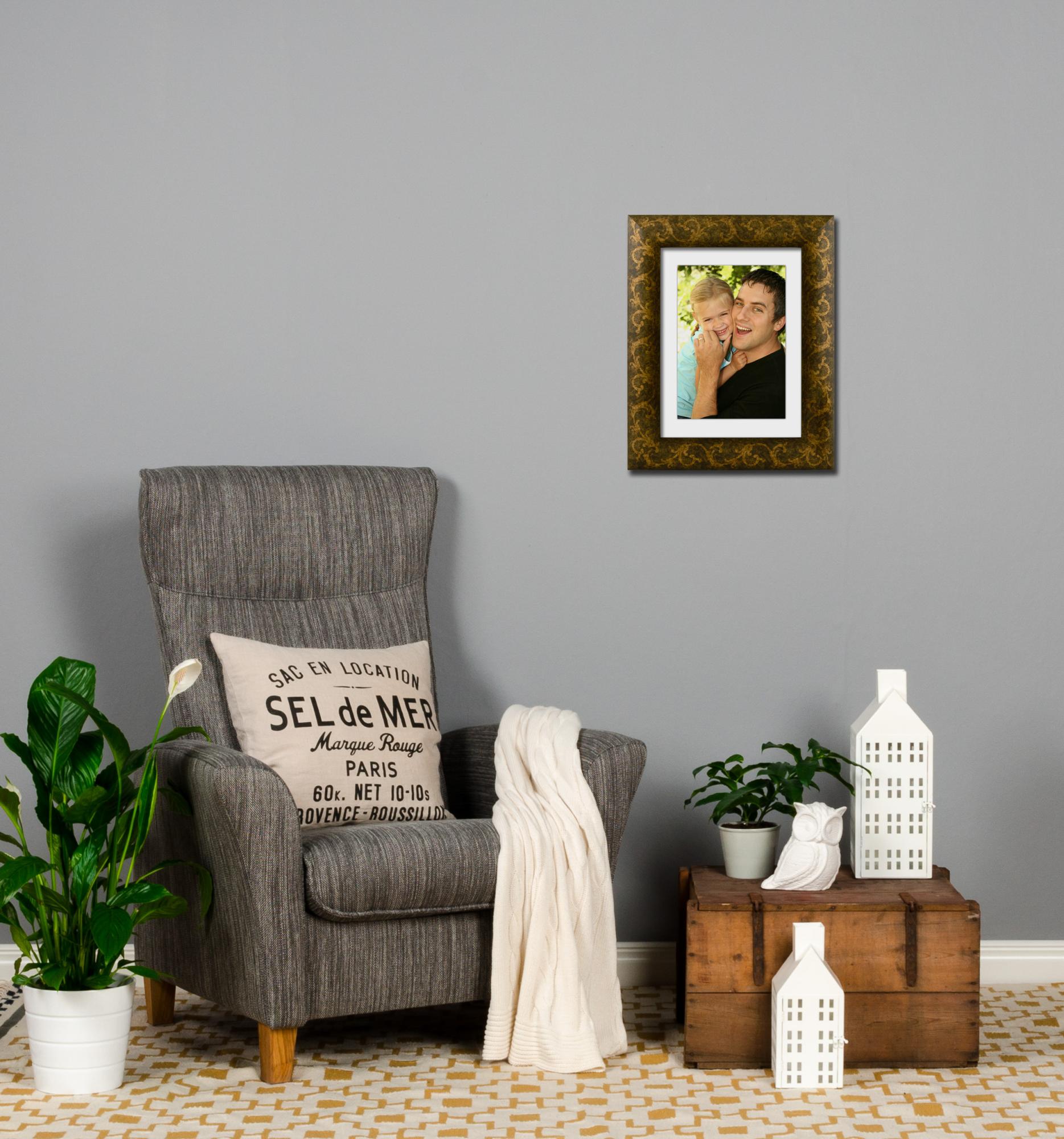 Aimez-vous les éléments de décoration luxueux qui ajoutent du caractère ? Nous avons alors le cadre parfait pour y mettre vos plus belles photos ! Ce cadre photo aux motifs complexes a un beau motif d'une couleur or scintillante. La surface brillante est traitée pour lui donner un look usé et vieilli qui convient parfaitement à un intérieur classique ou à l'ancienne. Étant donné que le cadre est fabriqué dans notre propre atelier de cadres selon les dimensions souhaitées, vous pouvez être sûr qu'il conviendra exactement où vous voulez le placer.