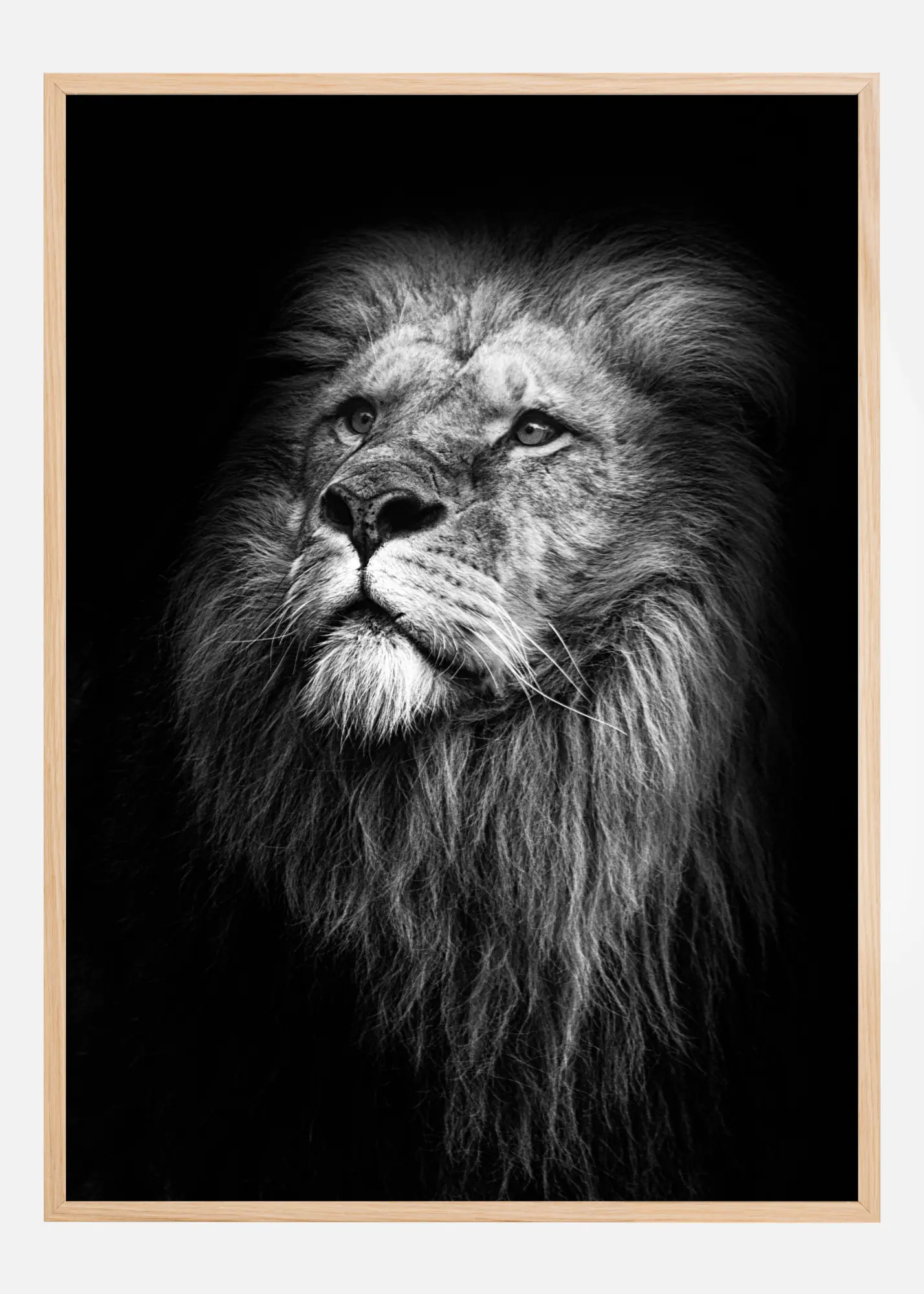 Une affiche majestueuse présentant une photo de tête du roi lion lui-même. Éclairé de face, ce cliché incroyable met véritablement en valeur la puissance du lion. Ajoutez une touche spectaculaire à vos murs nus grâce à ce poster en noir et blanc.