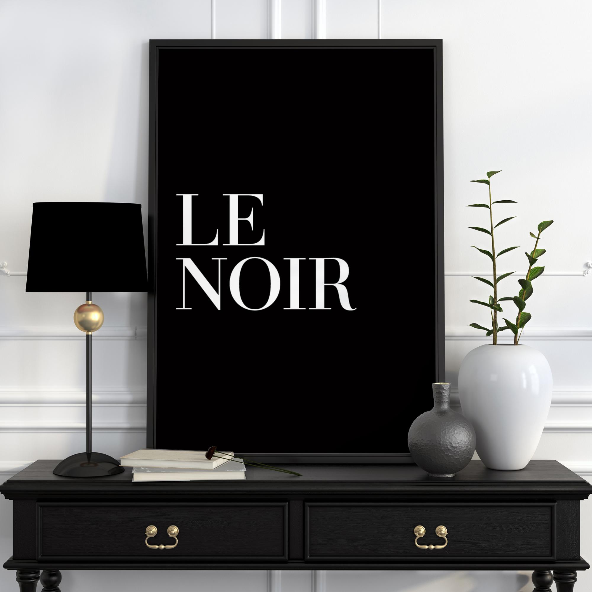Une affiche textuelle simple et minimaliste avec le texte "Le Noir", en grandes lettres capitales blanches sur un fond noir. Une affiche qui s'intègre parfaitement sur un grand mur de cadres, peut-être en combinaison avec l'affiche "Le Blanc" ? N'hésitez pas à compléter avec quelque chose de notre large assortiment de cadres.