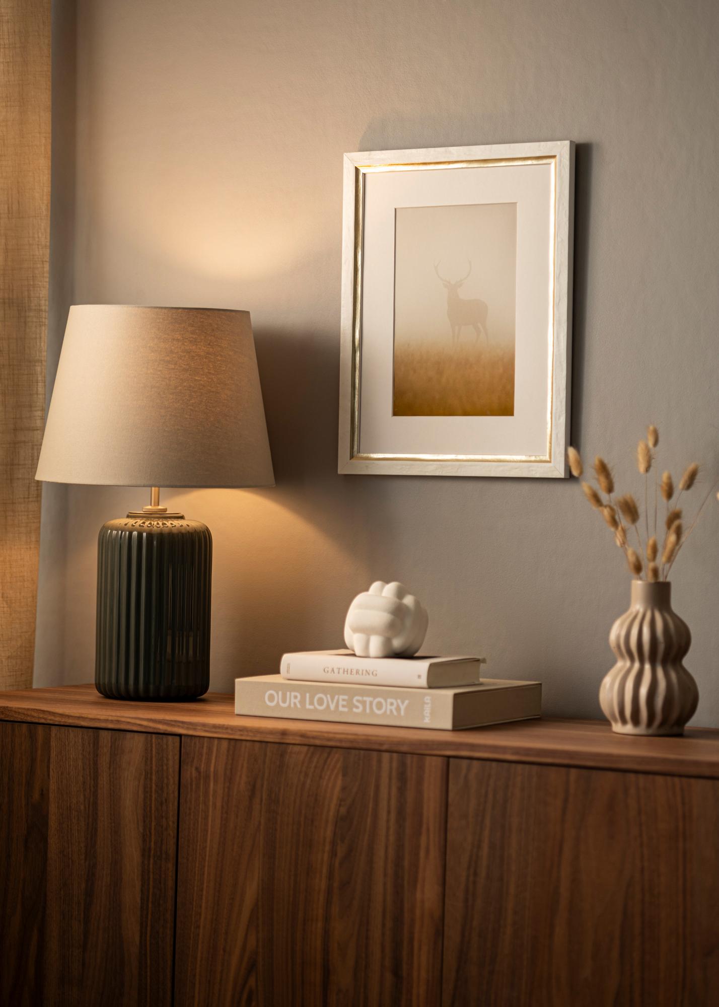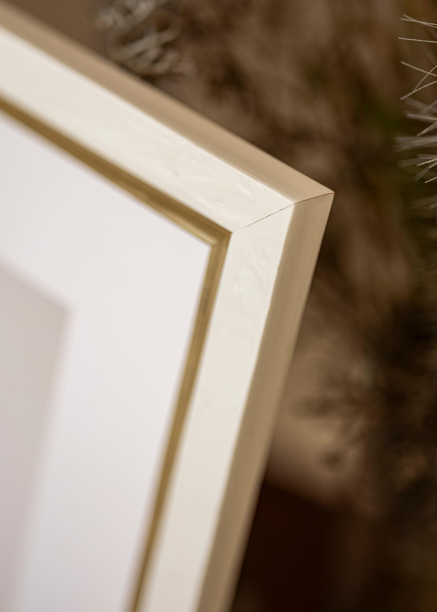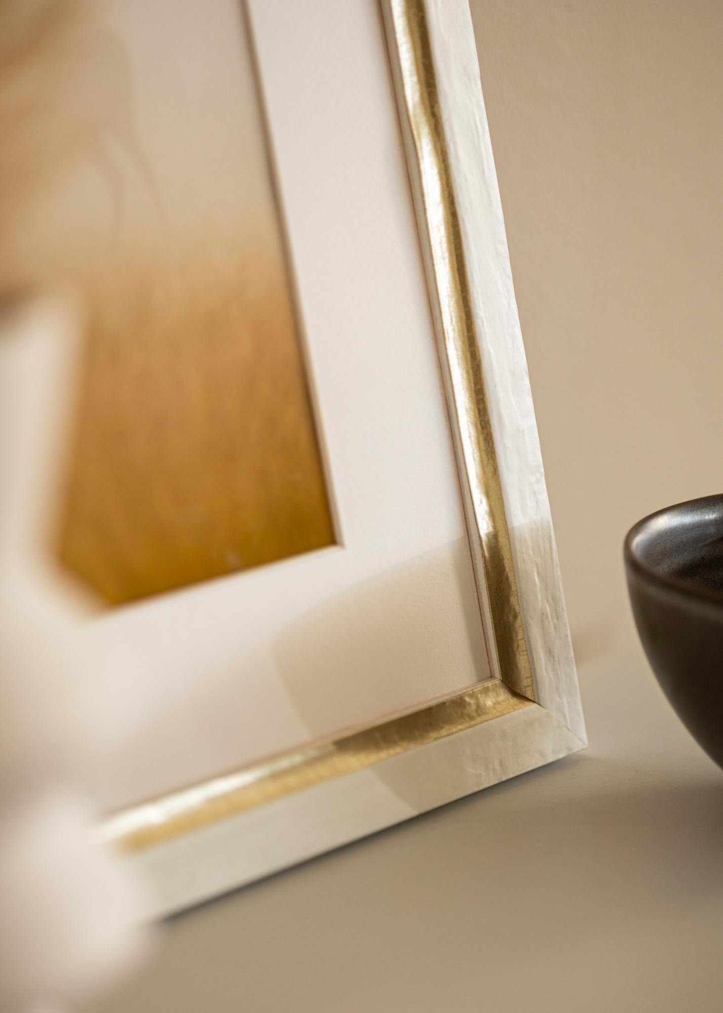 "Leonie" est un cadre large de fabrication italienne, ce qui garantit une haute qualité et un beau design. Le cadre a un profil élégant en blanc avec une surface clairement structurée avec un large bord argenté le plus près du motif.