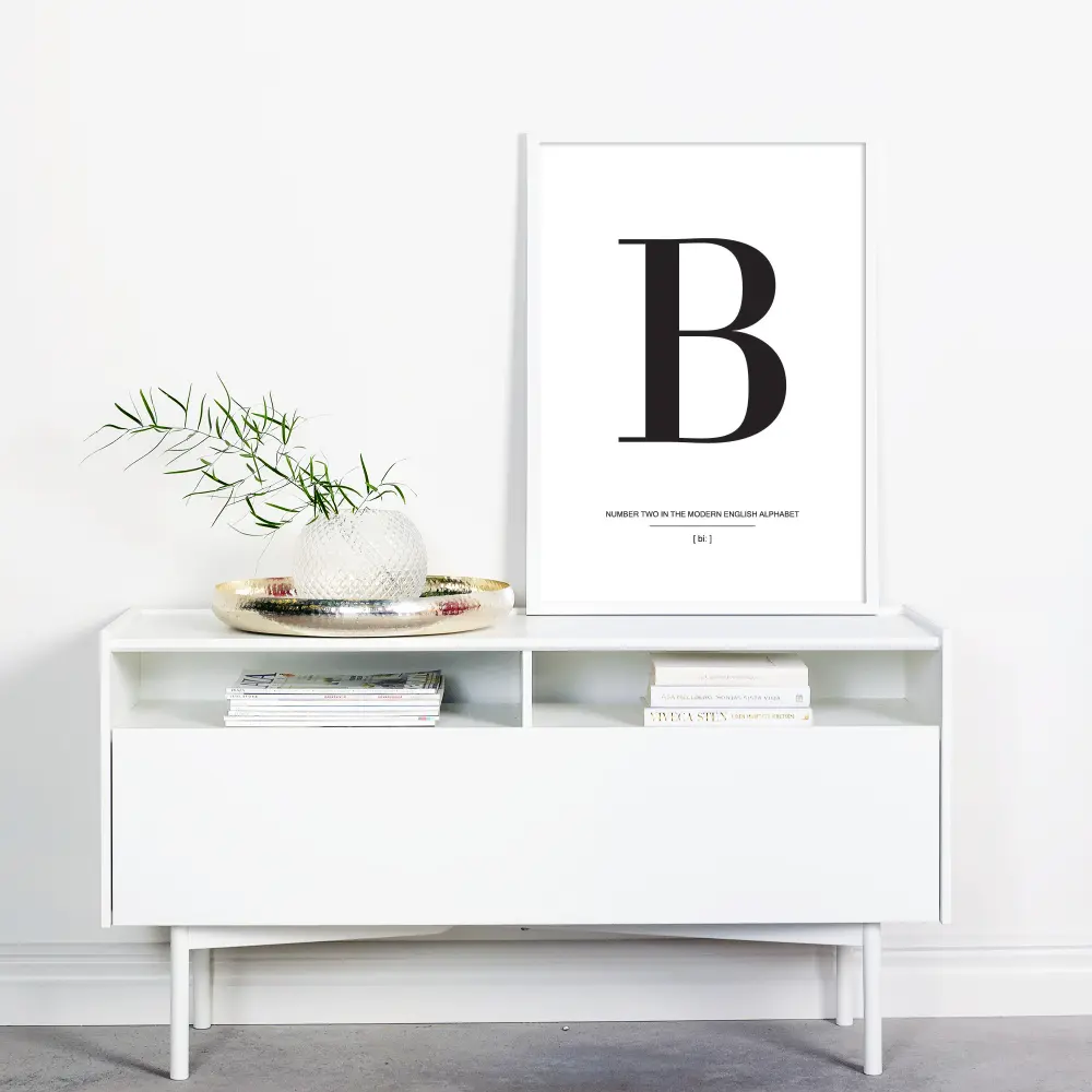 Dans la simplicité réside la beauté, et cela est vraiment prouvé par ce poster épuré avec la lettre B en noir sur un fond blanc. Le print a une typographie élégante et devrait être complété par d'autres posters de lettres de la même série pour créer un mur de cadres tendance et magnifique. Choisissez vos posters de lettres préférés et sélectionnez parmi notre large gamme de cadres de qualité, puis laissez libre cours à votre imagination sur les murs de chez vous.