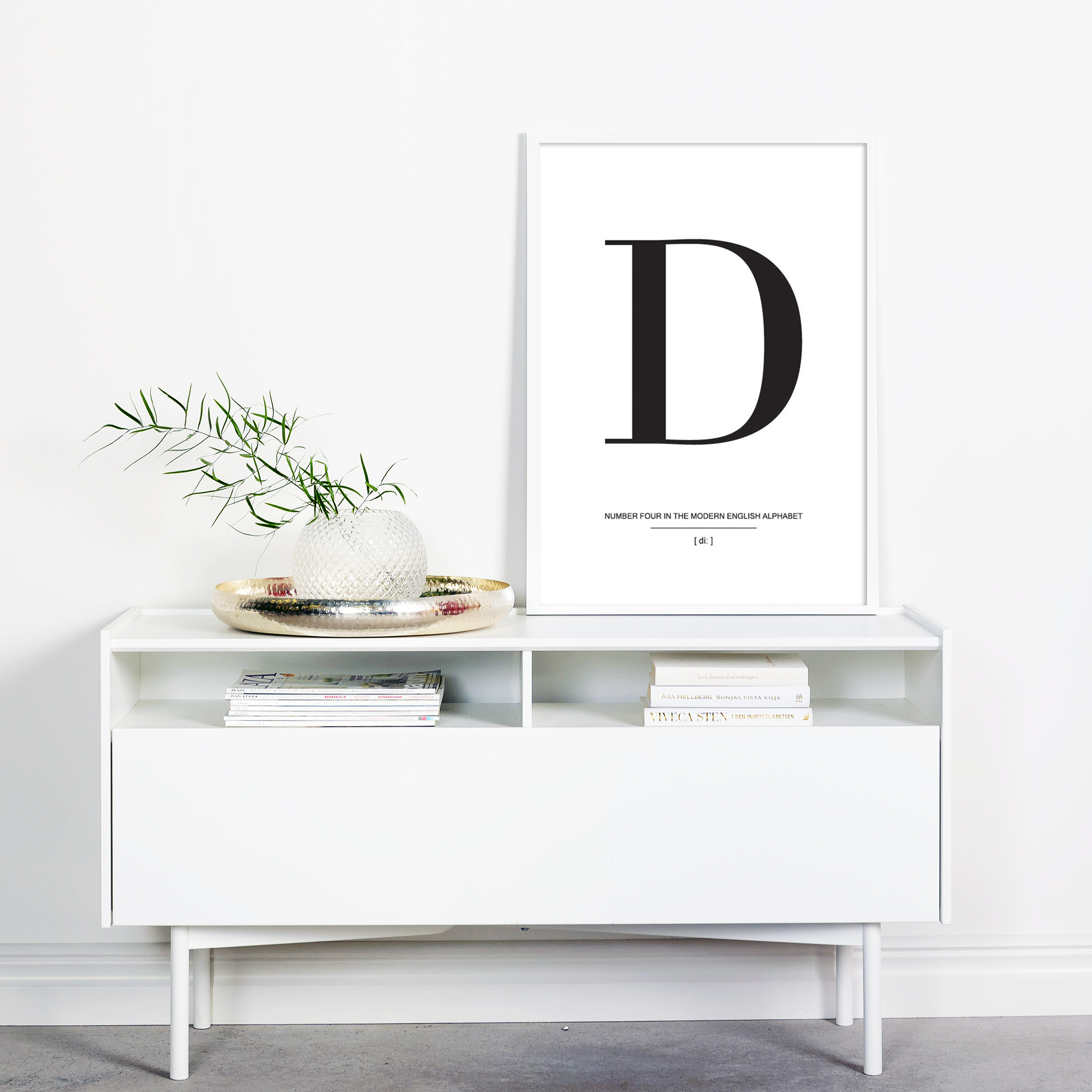 Dans la simplicité se trouve la beauté, et cela est vraiment prouvé par ce poster épuré avec la lettre D en noir sur un fond blanc. Le print a une typographie élégante et devrait être complété par d'autres posters de lettres de la même série pour créer un mur de cadres tendance et magnifique. Choisissez vos posters de lettres préférés et sélectionnez parmi notre large gamme de cadres de qualité, puis laissez libre cours à votre imagination sur les murs de chez vous.