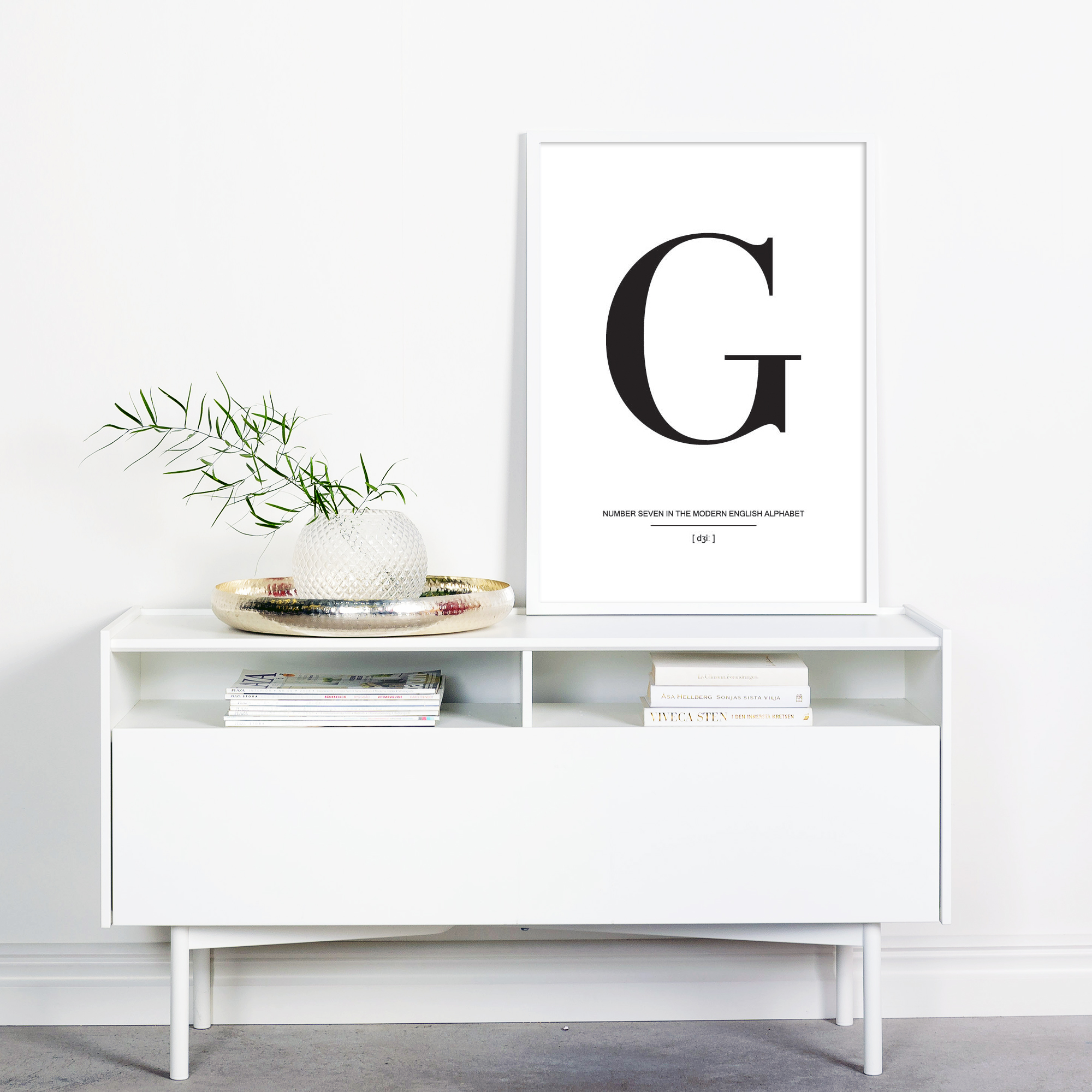 Dans la simplicité se trouve la beauté, et cela est vraiment prouvé par ce poster épuré avec la lettre G en noir sur un fond blanc. Le print a une typographie élégante et devrait être complété par d'autres posters de lettres de la même série pour créer un mur de cadres tendance et magnifique. Choisissez vos posters de lettres préférés et sélectionnez parmi notre large gamme de cadres de qualité, puis laissez libre cours à votre imagination sur les murs de votre maison.