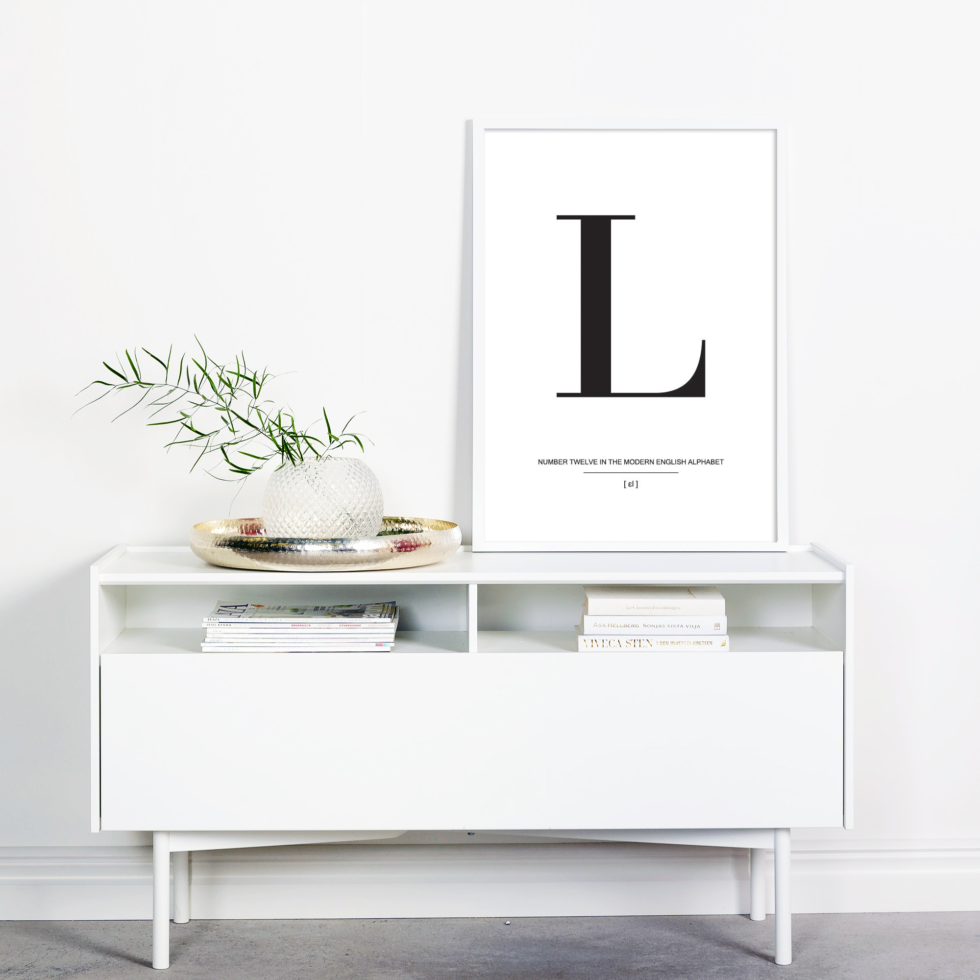 Dans la simplicité réside la beauté, et c'est exactement ce que prouve ce poster épuré avec la lettre L en noir sur un fond blanc. Le print a une typographie élégante et devrait être complété par d'autres posters de lettres de la même série pour créer un mur de cadres tendance et magnifique. Choisissez vos posters de lettres préférés et sélectionnez parmi notre large gamme de cadres de qualité, puis laissez libre cours à votre imagination sur les murs de votre maison.