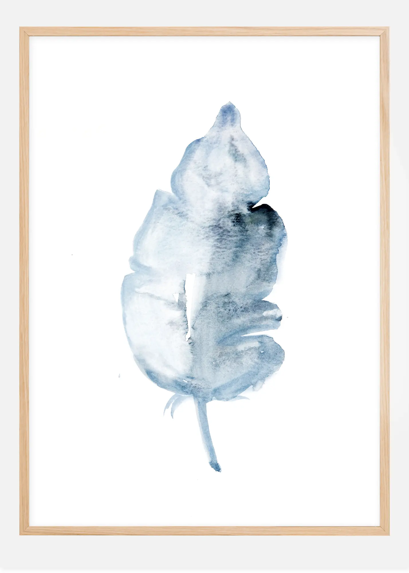Une belle affiche en gros plan d'une grande plume bleu pâle. Sur un fond blanc, la lumière se reflète sur le côté gauche de la plume, créant de la transparence. Un imprimé minimaliste qui s'intègre parfaitement à tout environnement.