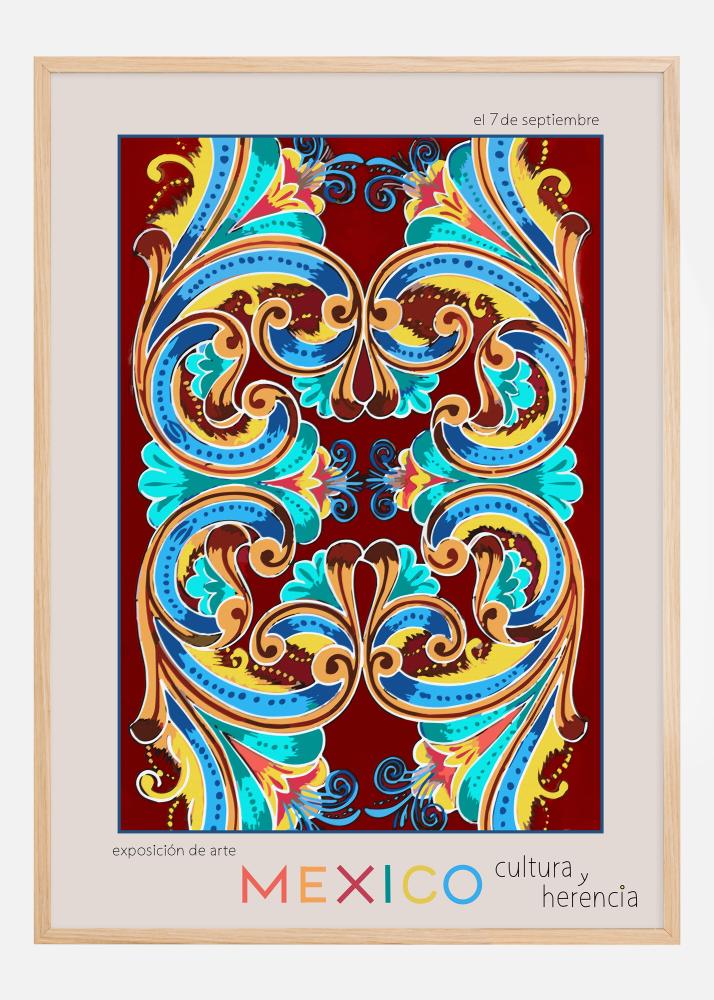 L'affiche est un hommage au riche paysage culturel du Mexique, et chaque détail de l'illustration est soigneusement conçu pour célébrer les traditions artistiques du pays. Le cadre en chêne simple complète les couleurs chaudes et fait de l'œuvre d'art un ajout idéal dans tous les espaces qui apprécient la diversité culturelle et l'énergie artistique. Cette affiche n'est pas seulement une invitation à une exposition d'art, mais aussi une invitation à expérimenter et à apprécier l'esthétique et l'esprit uniques du Mexique.