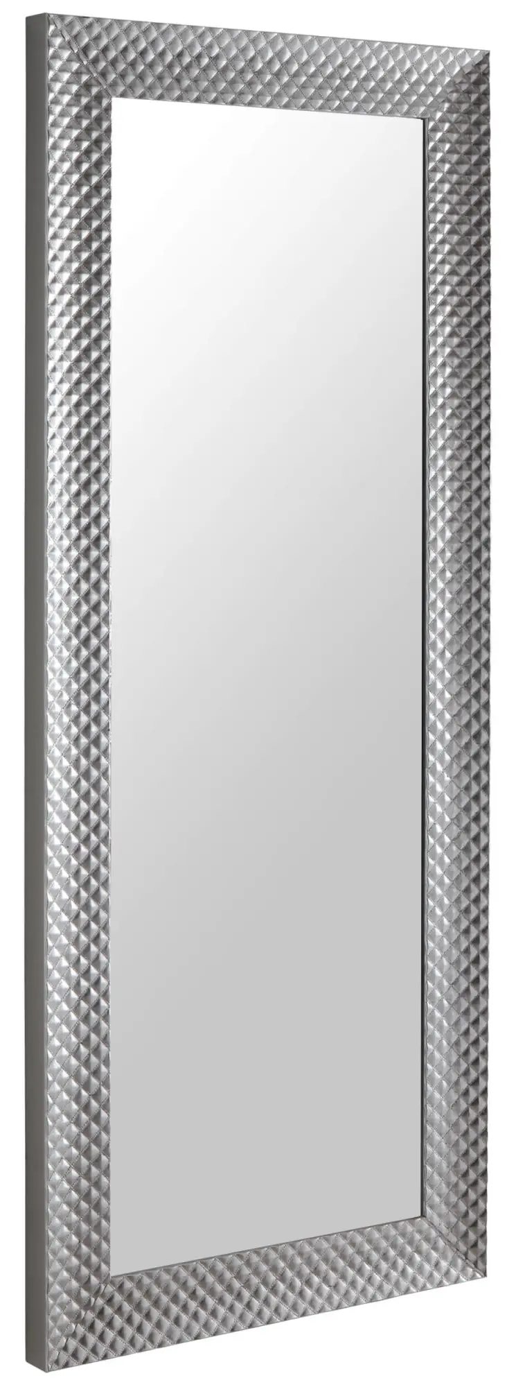 Si vous recherchez un ravissant miroir qui sort de l'ordinaire, vous avez trouvé ! Le cadre de ce superbe miroir est entièrement de couleur argentée et présente un motif décoratif rappelant les textiles matelassés. Il y a entre chaque côte de petits détails sous la forme de coutures assorties. Ce miroir provient d'un fabricant italien qui utilise du bois labellisé FSC et dont les produits sont de très haute qualité.