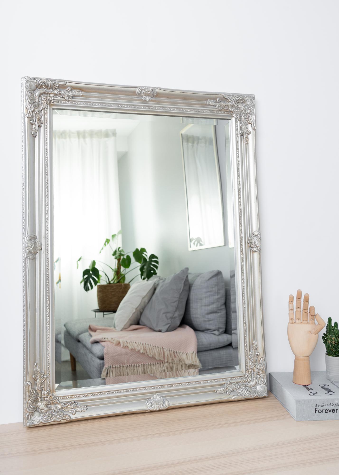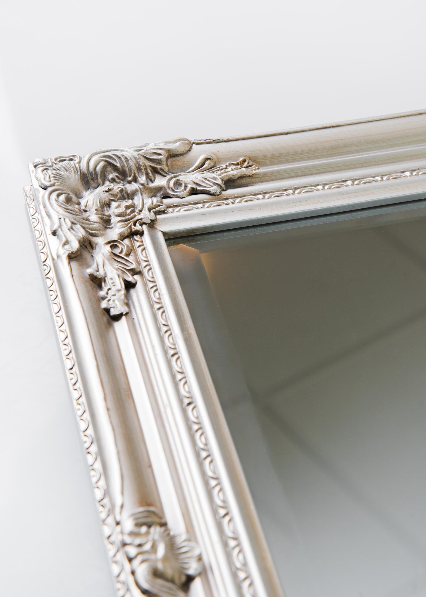 Le miroir Antique Argent est un miroir mural au format et à la forme traditionnels. Il est doté d'un cadre en bois à la décoration classique qui a été coulée dans du plâtre puis appliquée sur le cadre. Ce cadre fait du miroir un bel ornement qui attirera les regards.